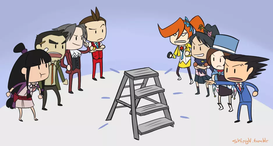 梯子对决:梯子 vs 折叠梯 在《逆转裁判123:成步堂精选集》中获取所有关于梯子与折叠梯的对话。 (涵盖整个三部曲)第三章 - 马戏团惊魂