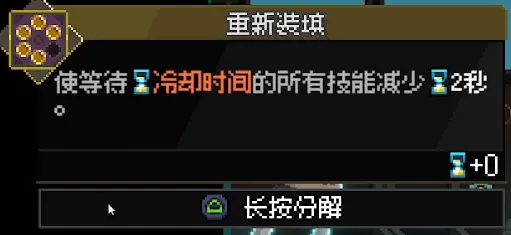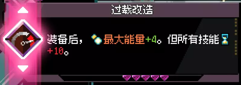 能量溢出 持有15个以上的能量 本作目前最难的成就,纯看脸,只能多刷新多开启,在抢先体验版本骰子不够的前提下,整局游戏现有道具拿齐可能勉强达到15个能量,而且一旦强行拿过多的能量,战斗能力难免下降,无法顺利推进关卡(推荐不太依赖构筑也有一定强度的【爆裂刃】作为武器,保证推进关卡),确实是最难完成的一个。 能量上限有关道具如下: 武器改造: 【过载改造】装备后,最大能量+4。但所有技能冷却+10;