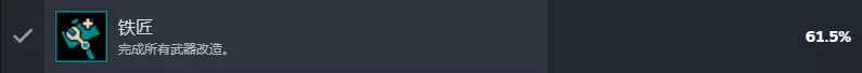 铁匠:完成所有武器改造。填满5个武器改造格。(多进入武器升级房即可)