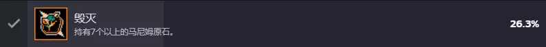 毁灭 持有7个以上的马尼姆原石 多走精英房(小Boss房)即可。 局外解锁成就 局外成长中使用橙色货币解锁对应的项目即可获得成就,不做额外介绍。