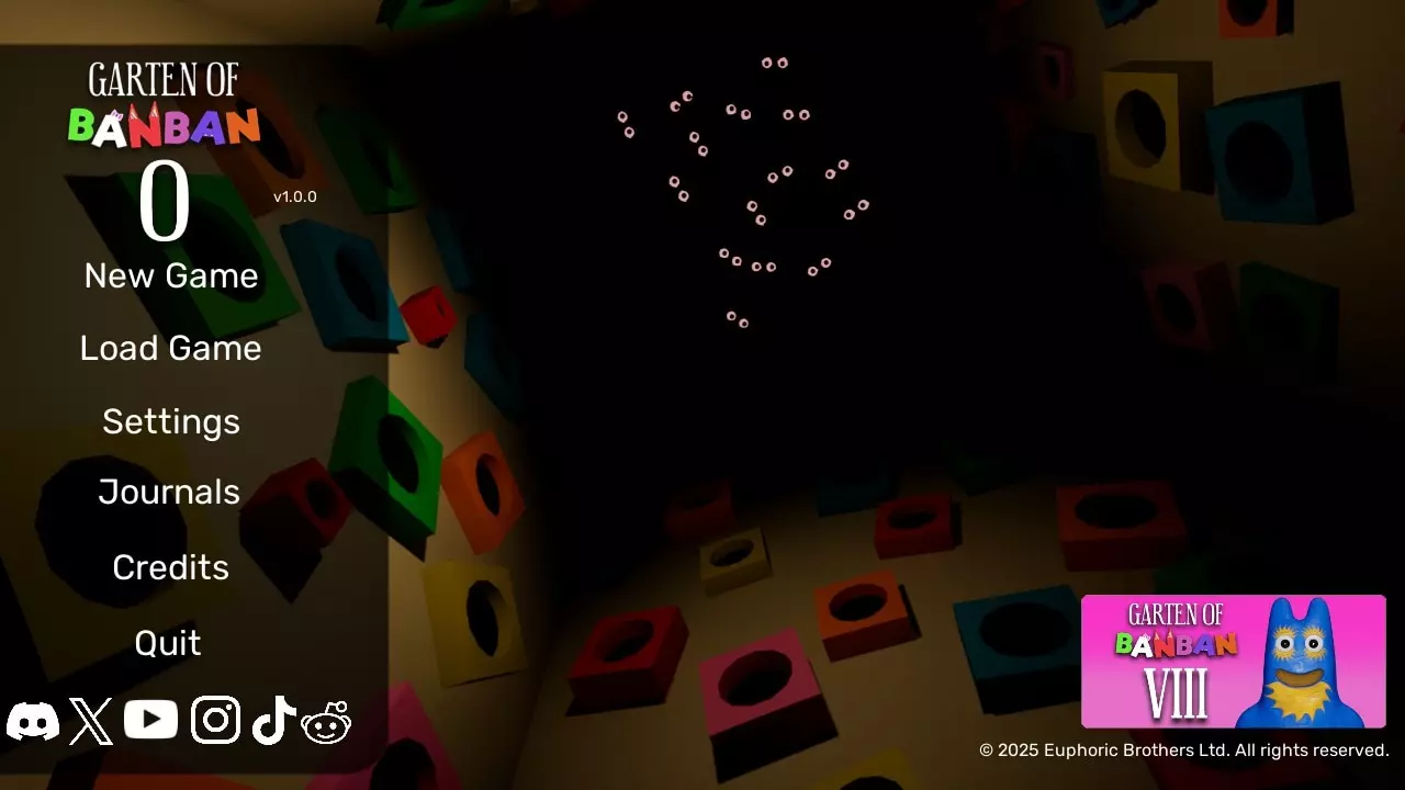 在菜单中点击以下按钮: - Discord - Youtube - Tik Tok - Redit - Instagram - Twitter - 班班的 Garten 8