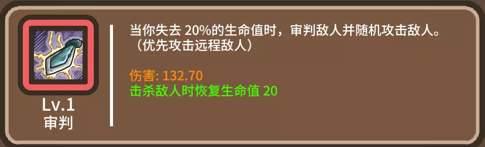 通关套路 听说新版本降低了难度,不管了,直接按照老版本最高难度来对待 进攻端:纯平A流是完全走不通的,根本没法处理怪潮。因此以技能流为主,副选加攻速的技能(部分技能需要大量的平A次数触发) 防御端:选加血和加护盾的技能作为双保险(第四关最终boss摸一下就是近2000血),不太推荐加闪避的技能,给的概率实在是太低了 下面将提到一些推荐的和避雷的技能,其他比较普通的技能就不详细叙述了 推荐的技能