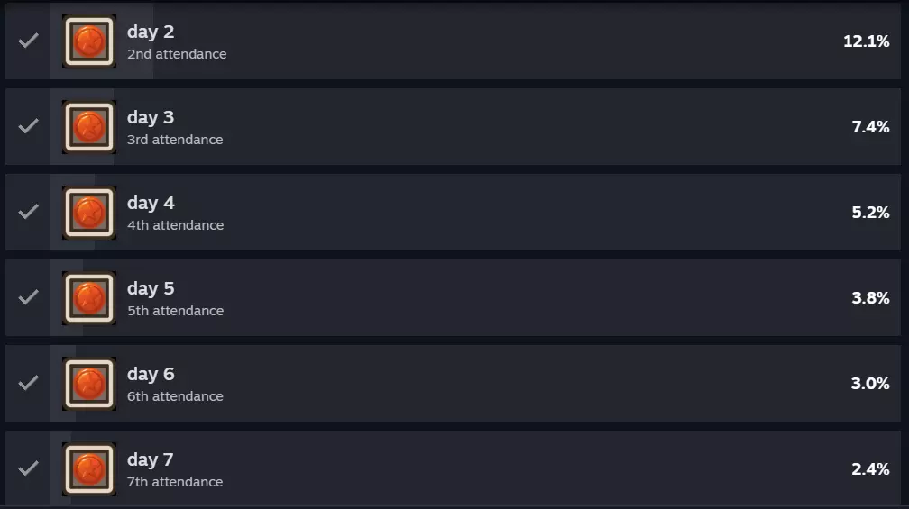 游戏第二天登录即可领取【day1】成就,以此类推,需要登录满八天。 注意,某些时间段登录游戏不会触发成就,建议换个时间再次尝试。 注意,若游玩两个版本,另一个版本的登录成就触发机制较为特殊,只能通过多次登录尝试。例如,另一个版本在前八天登录均未触发登录成就,但第九天登录时直接一次性触发了所有登录成就。