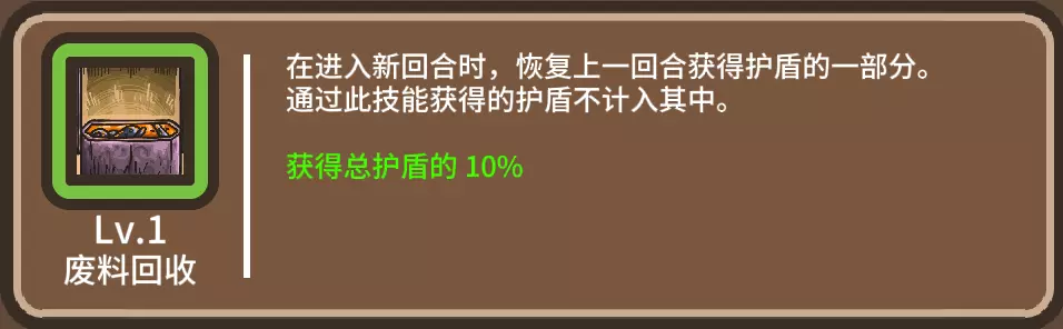 别看防御姿态提供的护盾只有1点,但该护盾没有上限。不过它的缺点是紫色品质难以获取,而且必须搭配满级的废料回收,两者配合后达成上万护盾并非遥不可及。