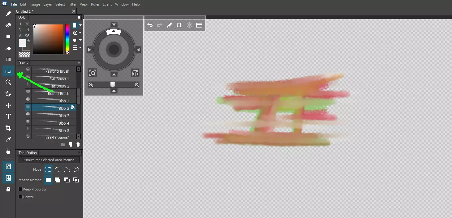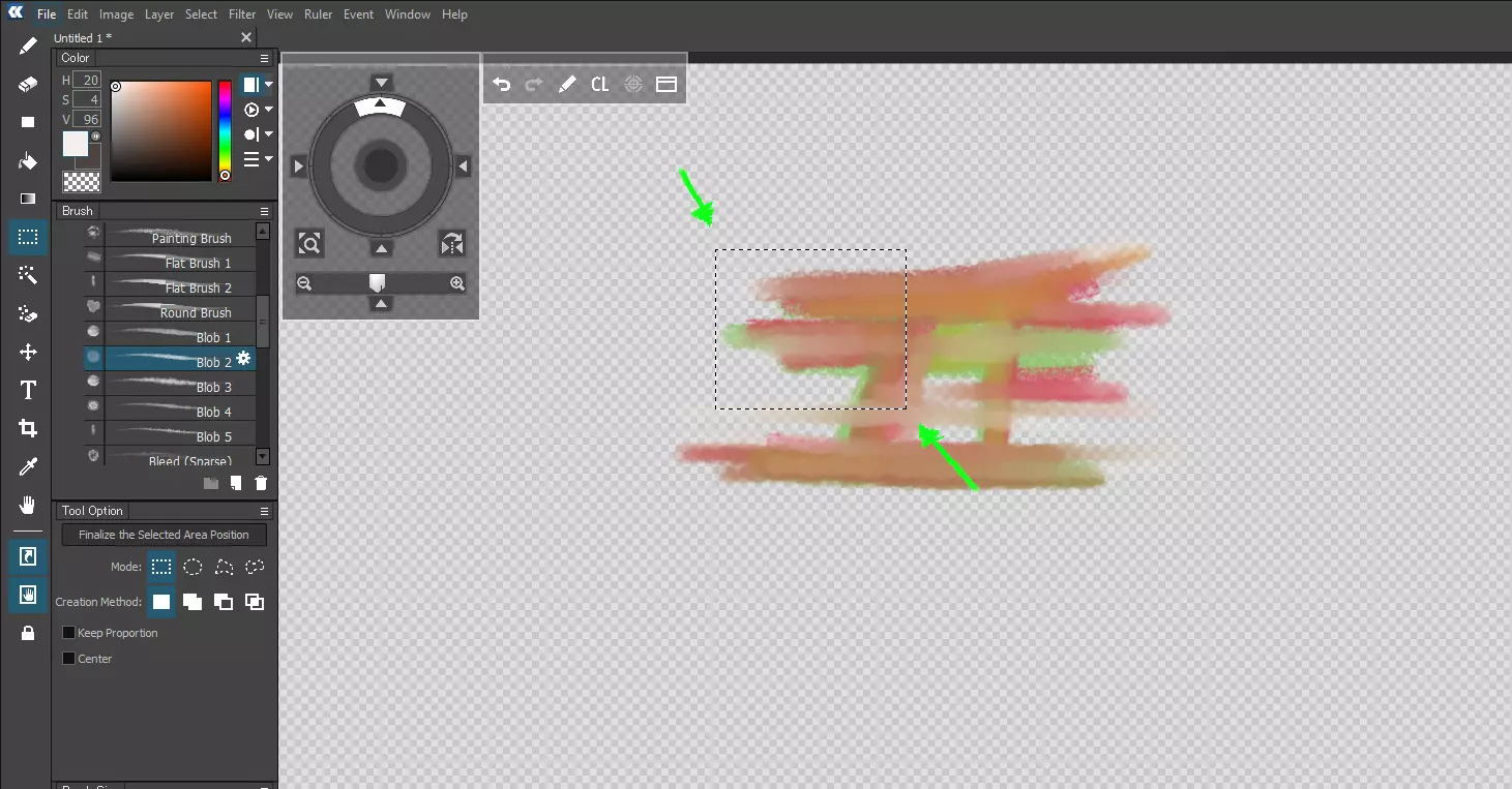按照绿色箭头所示绘制选区