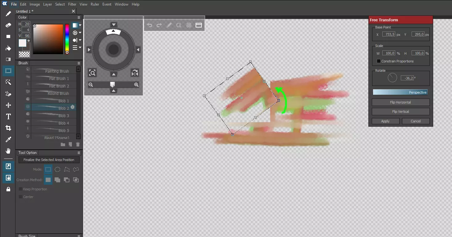 (3) 同时按下Ctrl+T键。完成此操作后,交互矩形和选项窗口将被激活,使你能够自由编辑选区内的图像。