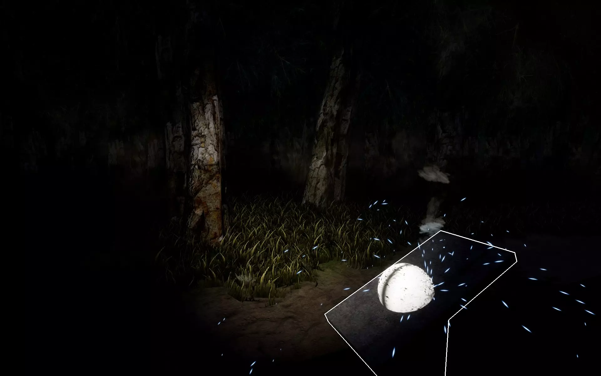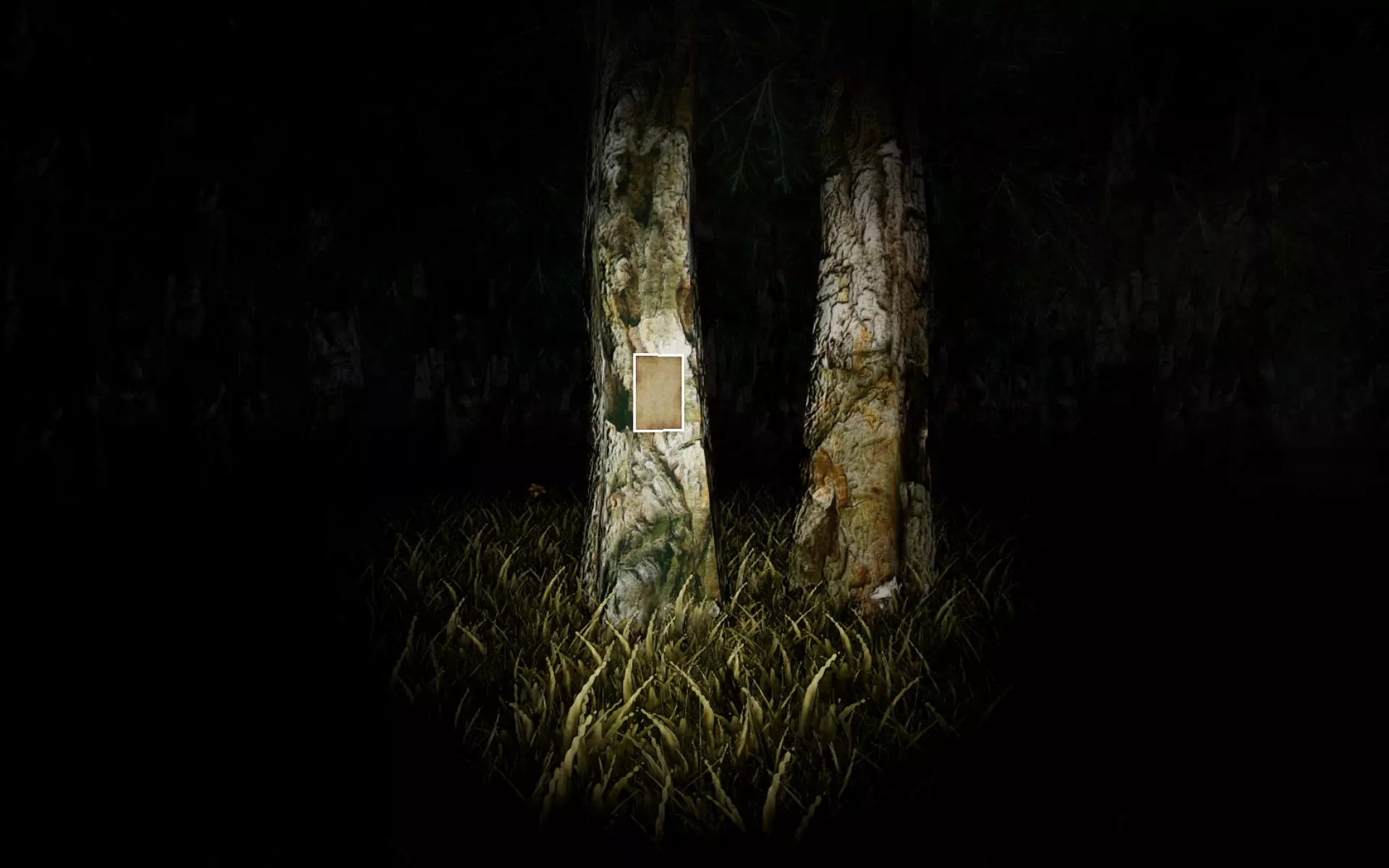 Q3成就 提示1: 在小路左侧,走到第3个火炬处。从这里走进森林(小路左侧)。穿过树木,直到在一棵孤零零的树上找到这里的第1个笔记。由于截图太暗,很难展示出来。说实话,我觉得这是在没有指引的情况下最难找到的一个。留意那些挡住它的树木的排列方式,并数一下它后面有多少棵树。如果你迷路了但觉得自己可能就在附近,这是一个很好的自查方法。