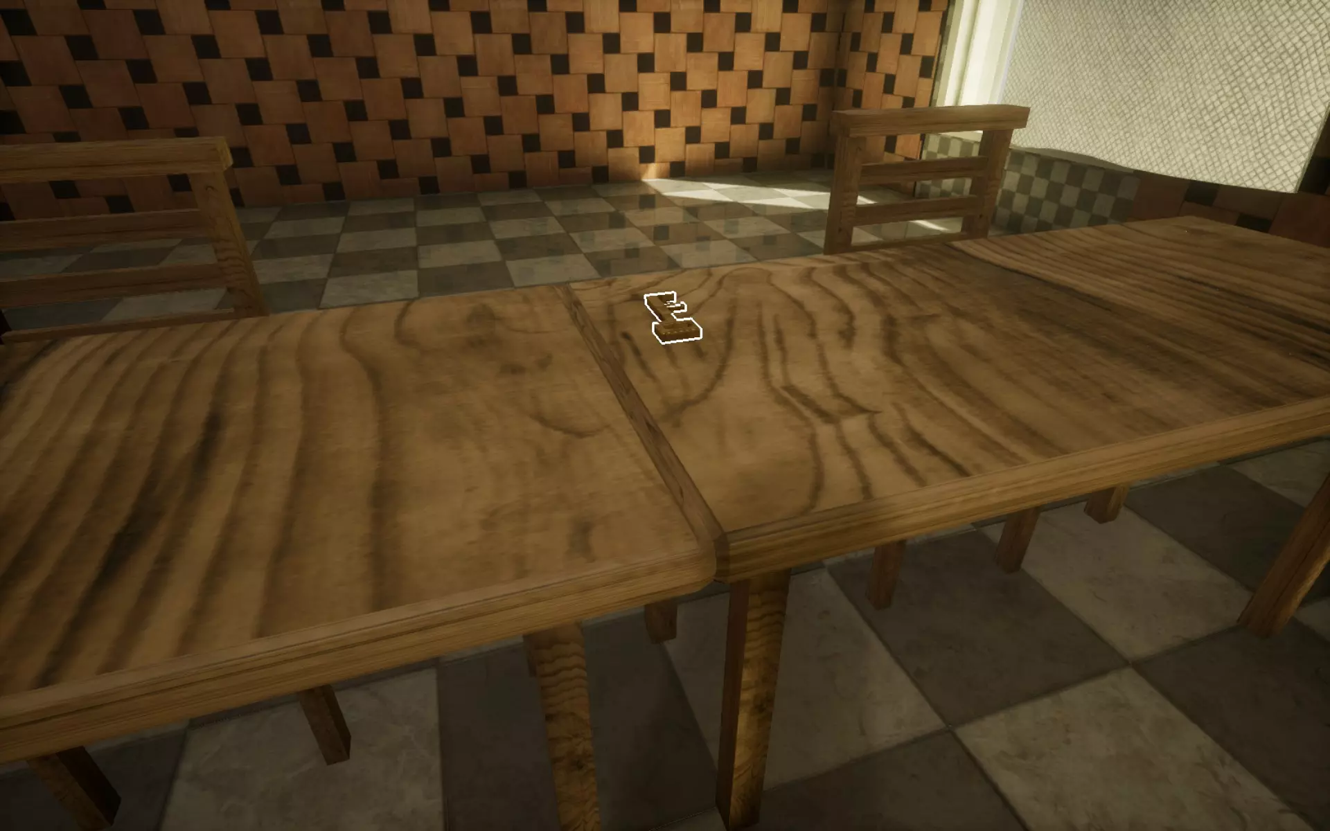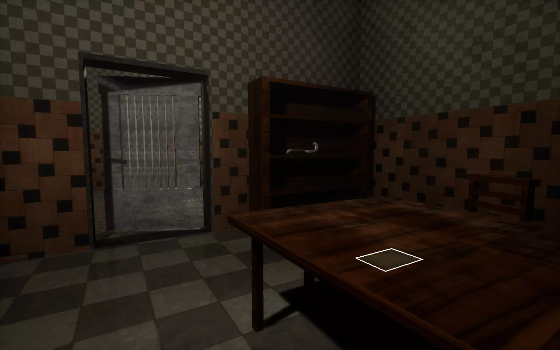 你左手边的第一扇门内是一间带小厨房的公寓。你身后的书架上有一把撬棍,按“E”键可以拿起它。