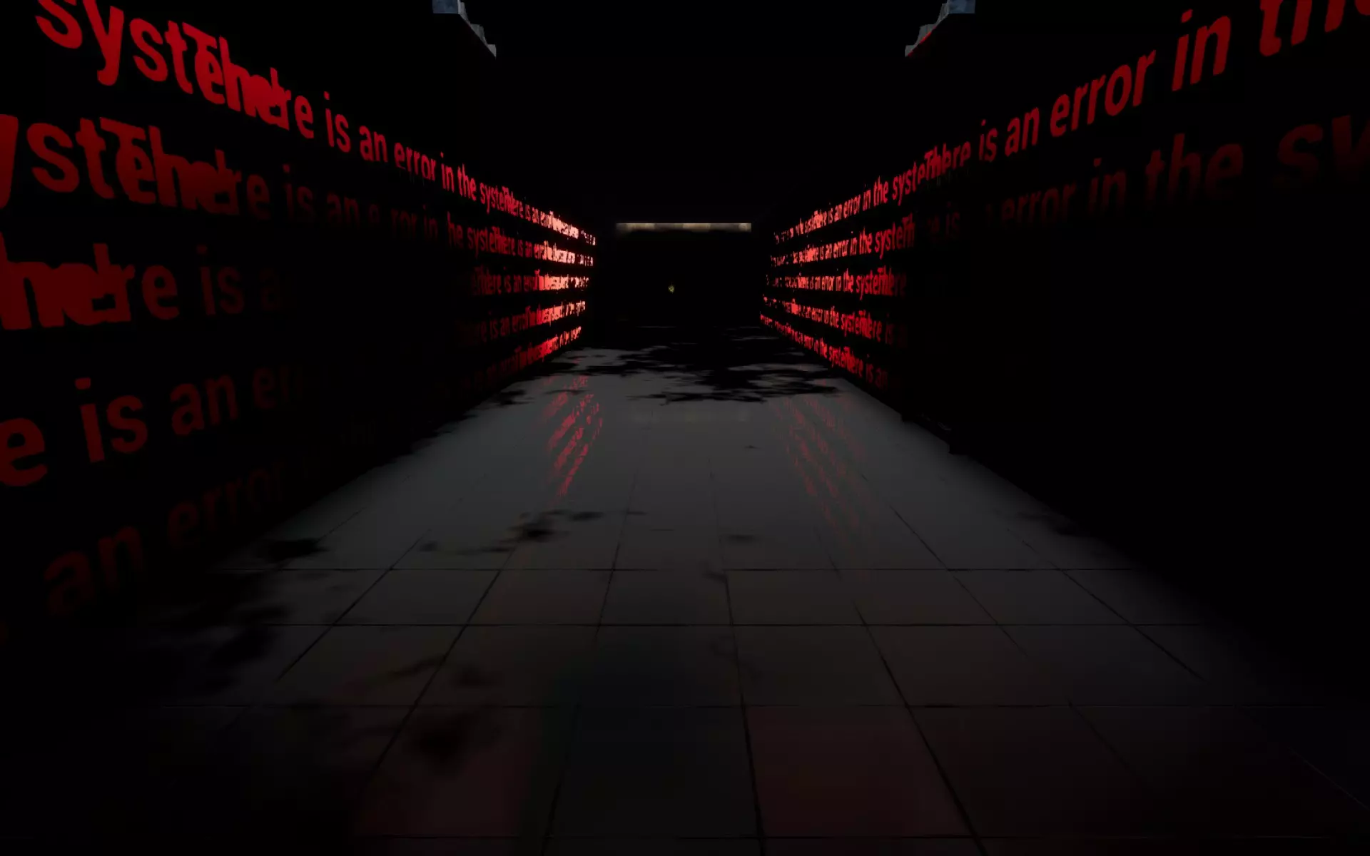 沿着走廊走到尽头。你会看到墙壁上出现错误信息。立即转身,进入带有蓝色符号的门。恶魔看门犬会毫不犹豫地杀死你。