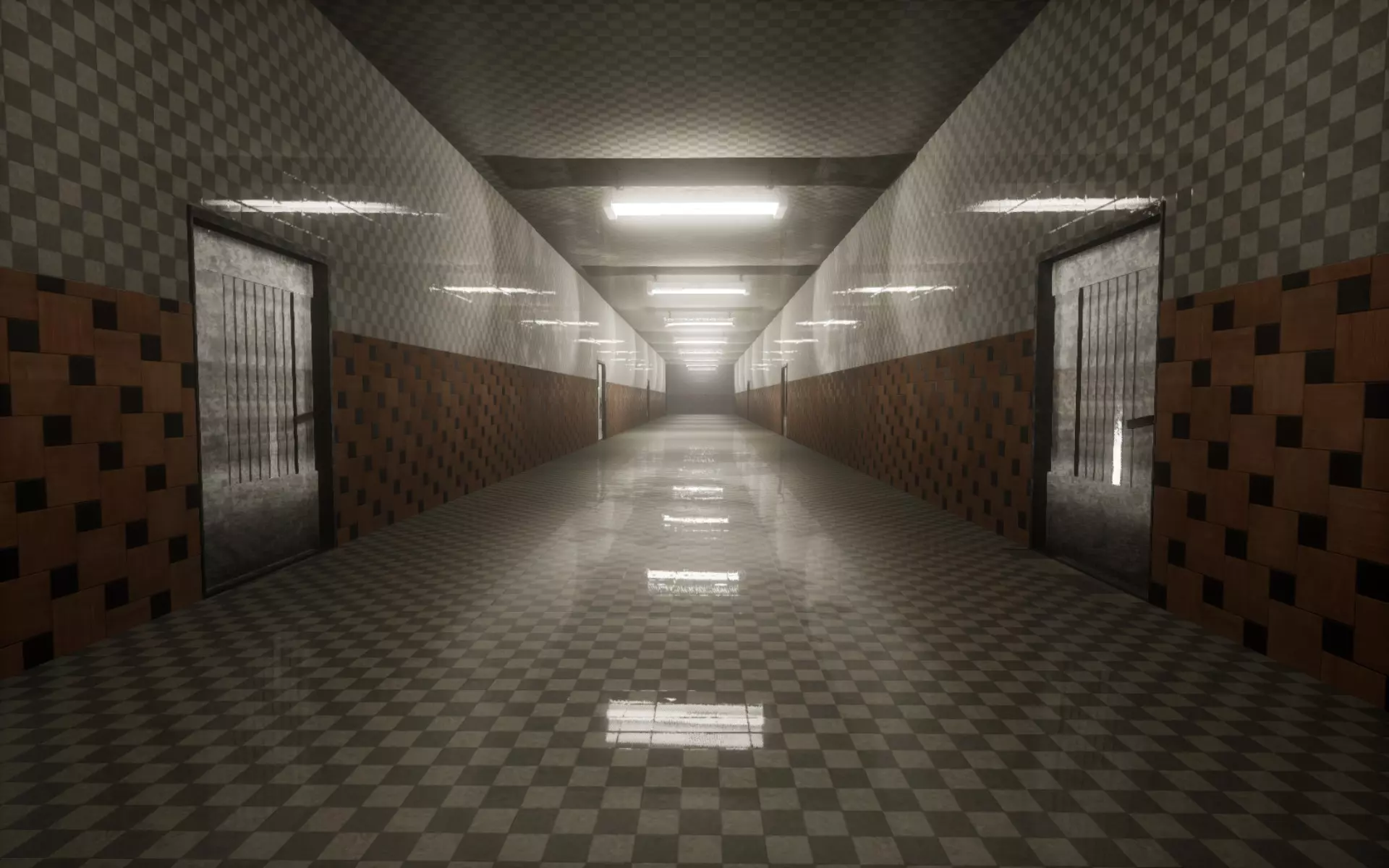 第一关和第二关 第一个区域是走廊场景。你可以探索几个房间,找到一些笔记并调查游戏的设计。