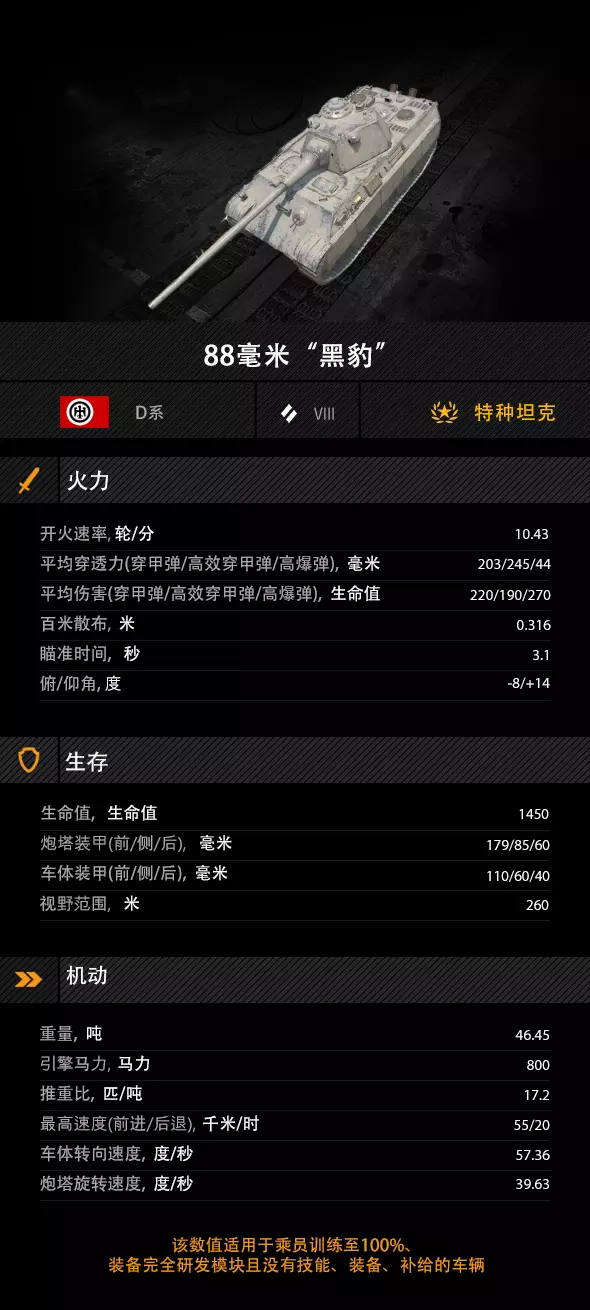 88毫米“黑豹” 属性图一览
