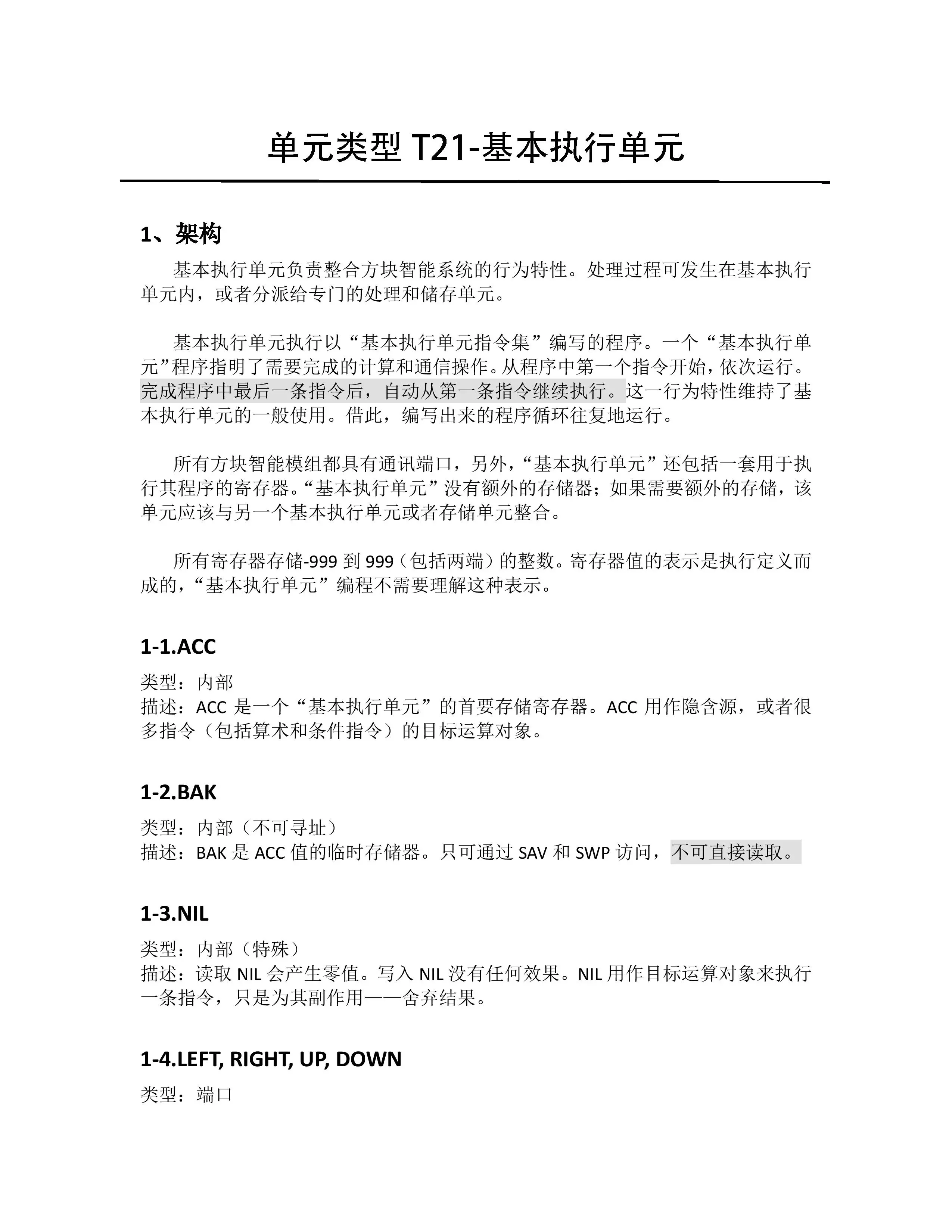 单元类型T21-基本执行单元