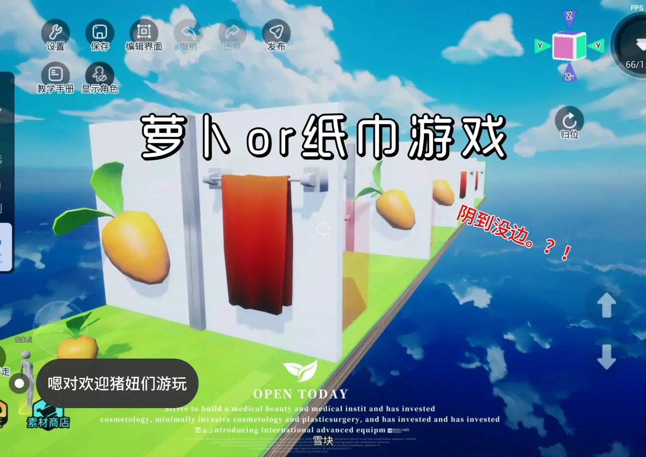 作者分享了自己在造物岛制作的“萝卜or纸巾”游戏地图,前两关可闭眼选,后面关卡很考验运气,作者表示好久做图还在适应,邀请大家去游玩。