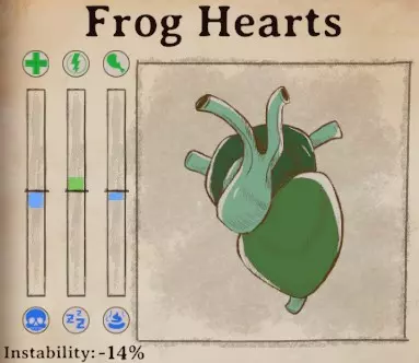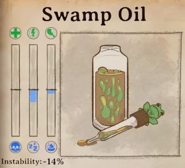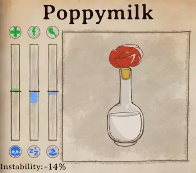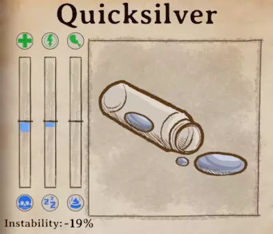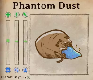 稳定性 稳定性对于莫里斯的药剂尤为重要,因为他经常会要求非常不稳定的药剂。当你必须添加或不能添加某种特定材料时,稳定性也很有用。这只是一份快速参考指南,因为游戏中没有简便的方法来比较稳定性。极不稳定:玻璃碎片(-32%)、电池液(-24%)、生锈齿轮(-24%)、蜂蜜(-21%)、莲藕(-20%)、烟灰(-20%)、宁芙发丝(-20%)、水银(-19%)、矮人胡须(-19%)、山羊奶酪(-18%)、猎鹰蛋(-18%)、王叶草(-18%)、酿造大蒜(-18%)、红鲱鱼(-17%)、可可豆(-16%)、蠕行水晶(-16%)、城市苔藓(-15%) 不稳定:鼠尾(-14%)、海胆(-14%)、蜜蜂(-14%)、青蛙心脏(-14%)、薰衣草(-14%)、圆石草(-14%)、罂粟奶(-14%)、沼泽油(-14%)、粘性树脂(-14%)、木族灰烬(-13%)、鲸油(-13%)、 muktuk(-13%)、诅咒腐木(-13%)、 troll 皮(-12%)、 snallygaster 翅膀(-12%)、强力香蕉(-12%)、猛犸蘑菇(-11%)、曼德拉草(-11%)、莱茵墙公报(-11%) 最稳定:灵感药剂(0%)、蝴蝶翅膀(-3%)、凝固猪血(-6%)芦荟 (-7%)乌鸦羽毛 (-7%)鹰头狮爪 (-7%)跳跳豆 (-7%)月光花 (-7%)幻影粉尘 (-7%)蜘蛛毒液 (-8%)绯红藤蔓 (-8%)茴芹 (-8%)梦魇兰花 (-8%)老酒馆威士忌 (-8%)红毛丹 (-9%)魔鬼辣椒 (-9%)史莱姆脑 (-10%)糖蜜 (-10%)飞蛾之眼 (-10%)蝾螈之眼 (-10%)蛇皮果 (-10%)鼻涕虫 (-10%)玫瑰果 (-10%)甲虫 (-10%)冰元素之泪 (-10%)森林龙鳞