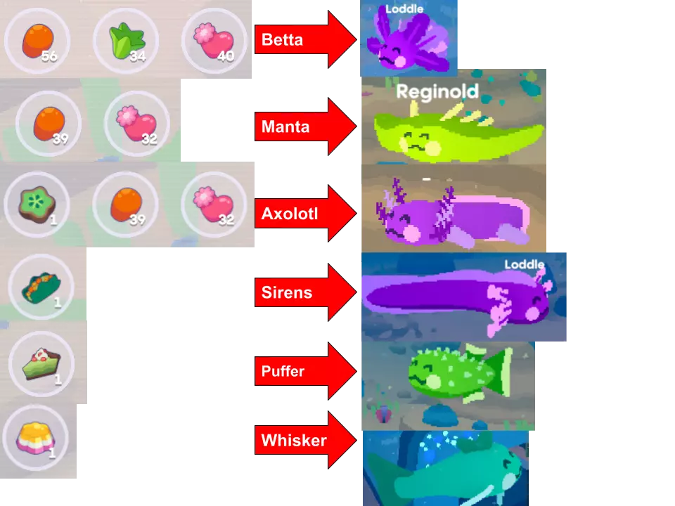 每只洛德尔都有不同的最爱食物。你只需用最初的几只洛德尔尝试各种不同的食物,直到找到它们各自的最爱食物~ All Grown Up