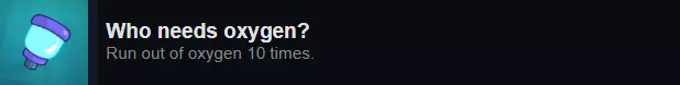 这个成就相当简单,也很好理解!在游戏初期还没有升级的时候更容易完成。我为了完成这个成就开了一个新存档。 *现在这个成就只需要你第一次因氧气耗尽而死亡就能解锁! 洛德尔的可能性