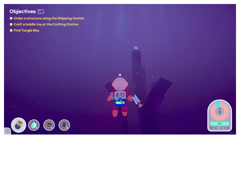 完成故事的第一部分后,你可以在【航运站】制作该物品,所需材料如下: 4个金属碎片 2个玻璃碎片 10个塑料碎片 3个电子碎片 所有这些材料都可以通过回收获得,除了电子碎片,你需要自行寻找。 我必须实际装备该物品才能获得成就,操作方法是右键点击鼠标,然后选择【水坑清洁器】。 Packed Like Sardines