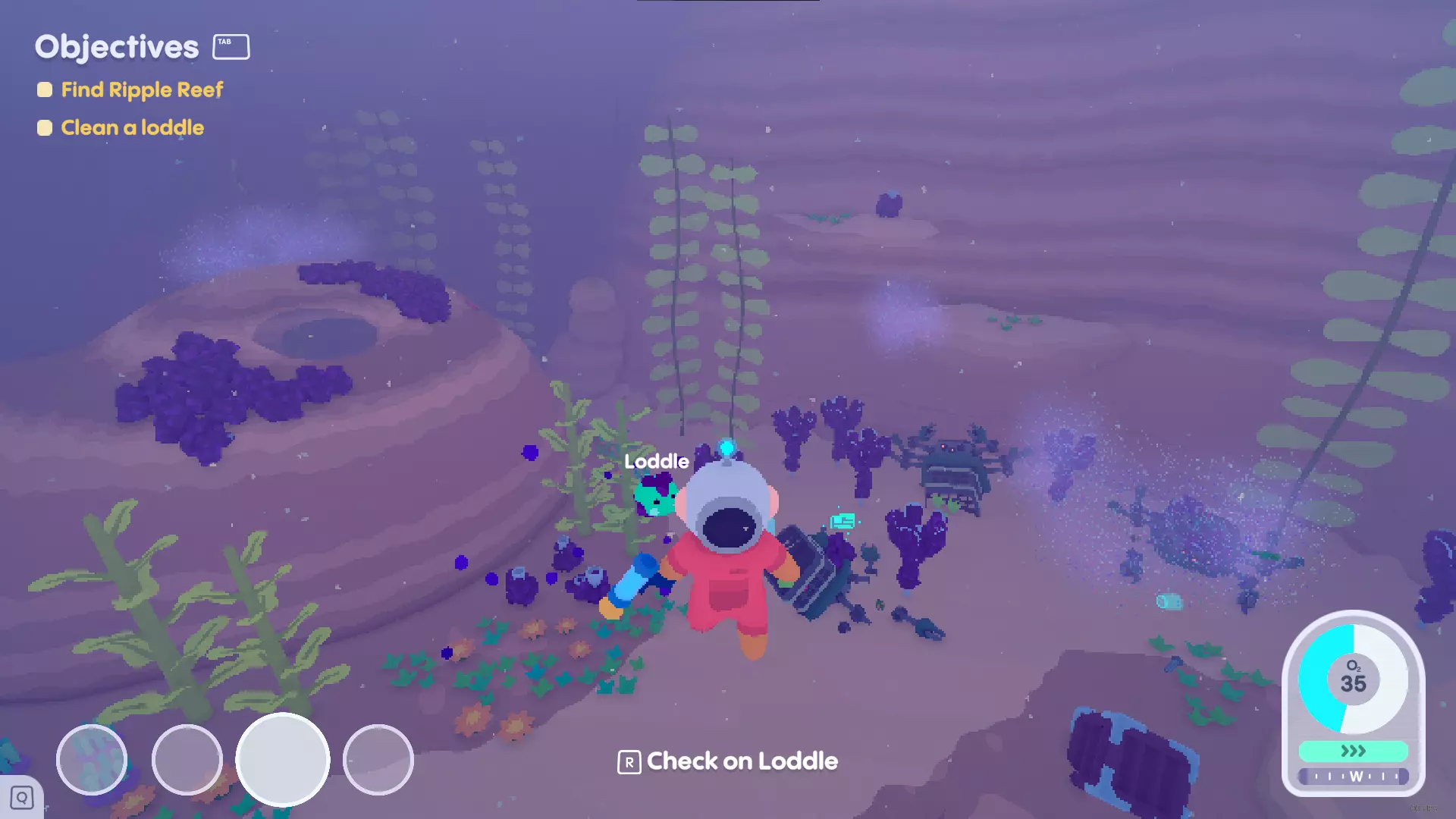 你可以通过穿过家园海湾周围的圆环来清洁洛德尔。我个人会随身携带一个制作好的充能环,这样就能快速为发现的任何洛德尔去污。充能环在探索新区域时非常有用,因为它们可以为你补充能量和氧气。 清洁至上,洛德尔至上
