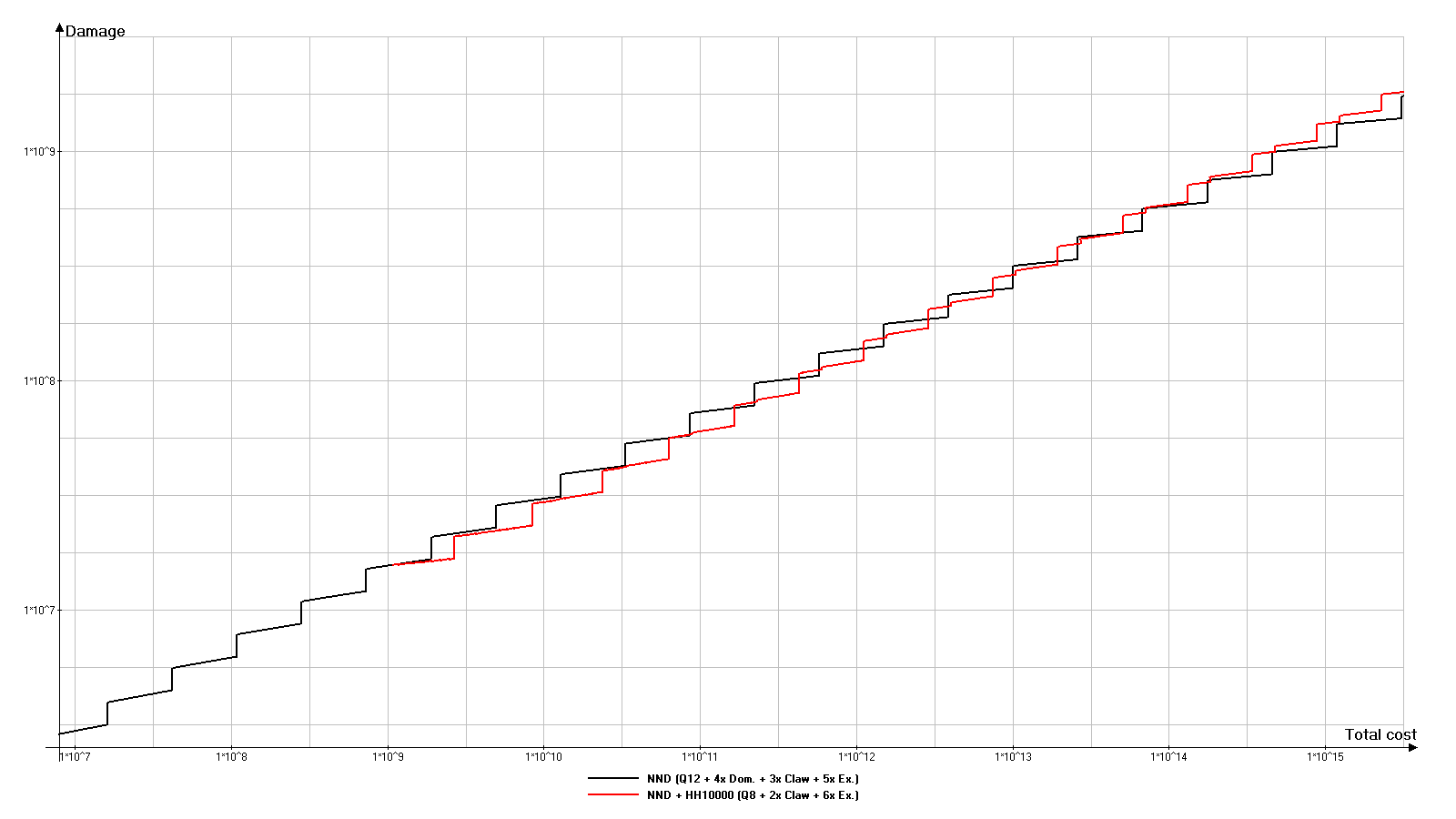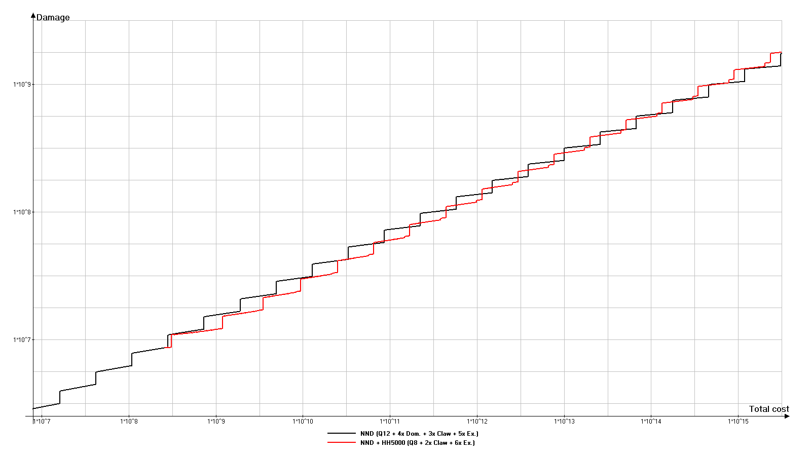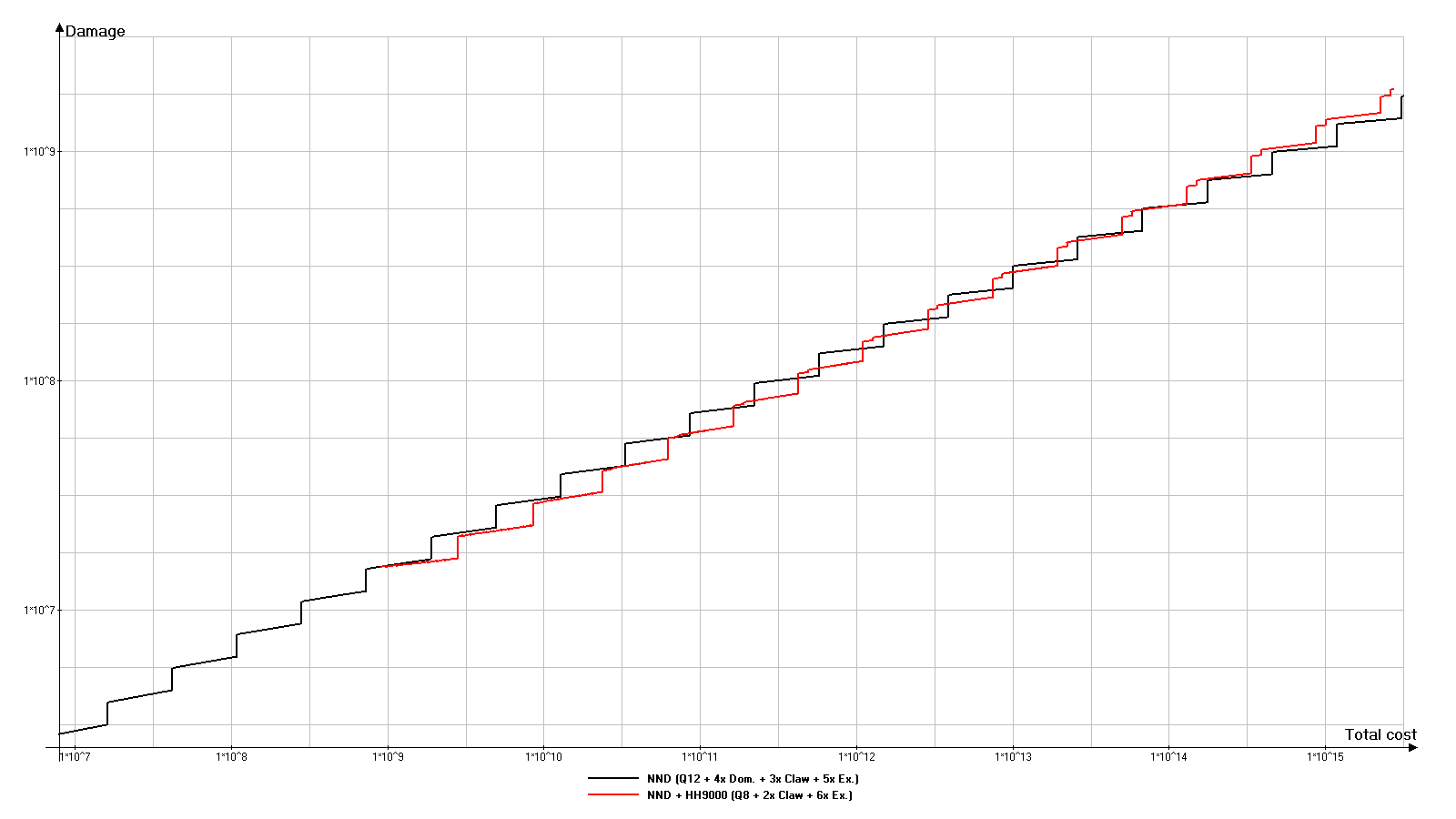 在此选项中,超出NND伤害的倾向会被放大。超出部分已明显达到约10^14红宝石的总成本。HH9000
