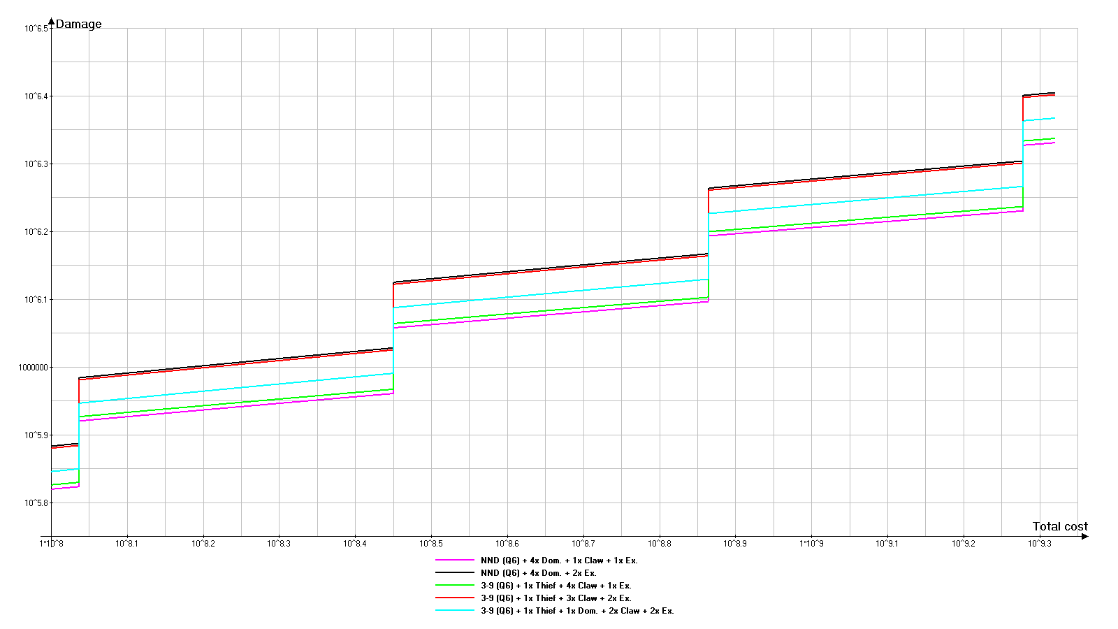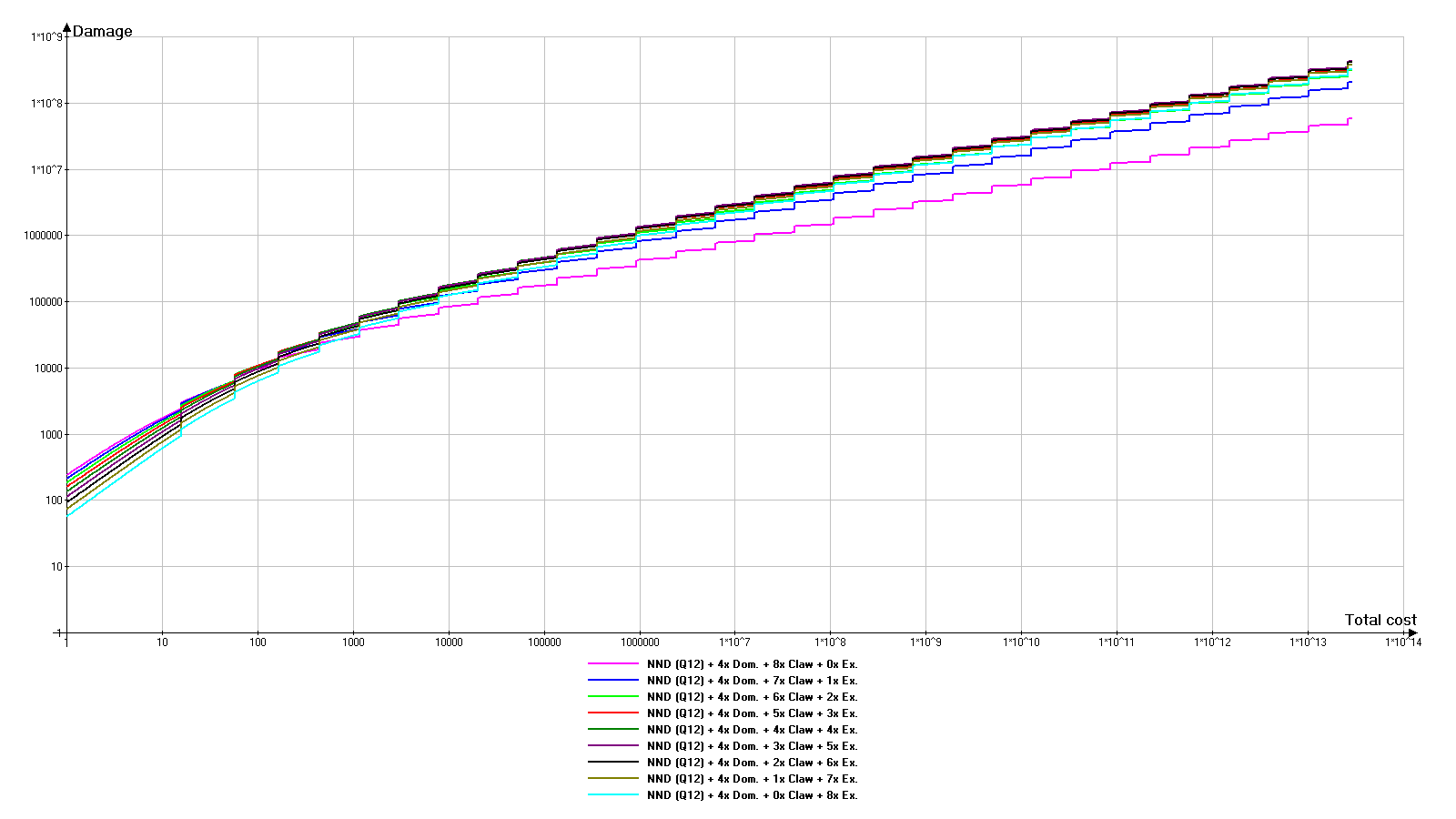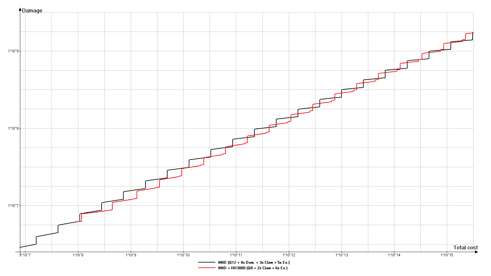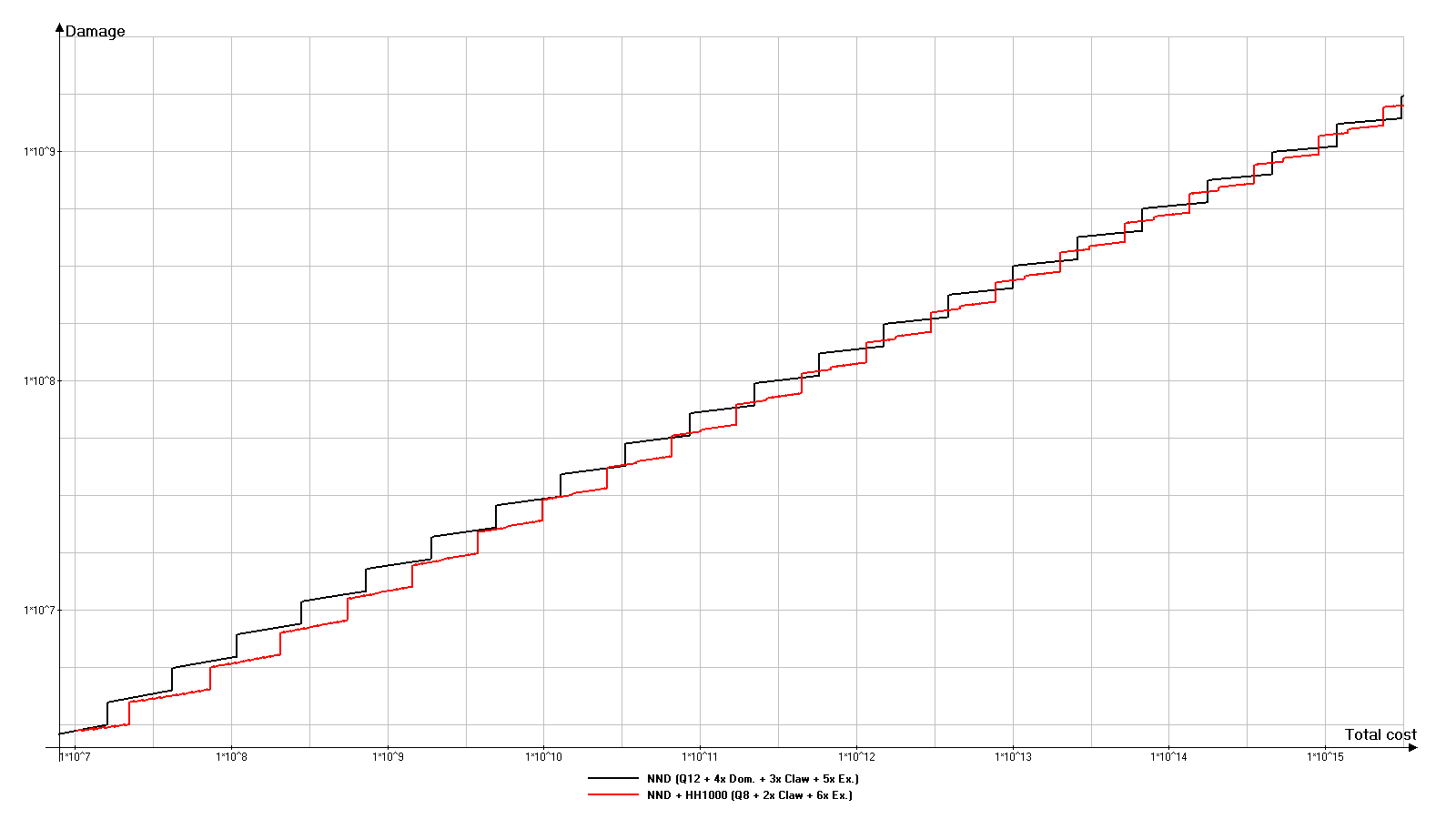 在此选项中,超出NND伤害的倾向会被放大。超出部分已明显达到约10^14红宝石的总成本。HH9000