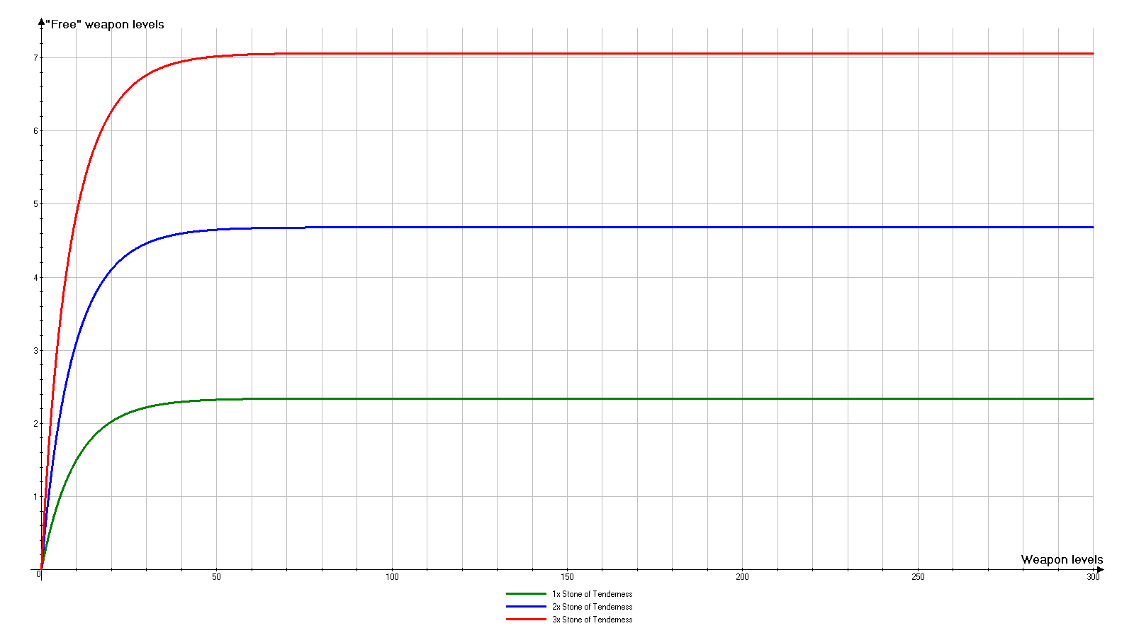 爪之石提升总体伤害,但现在它在所有等级的提升效果几乎相同。卓越之石在后期等级仍能大幅提升伤害。至于温柔之石……嗯,它不会提升任何属性。它只是降低升级成本,让你可以将节省下来的红宝石用于其他方面(第二武器、戒指等)。短期效果还不错,但长期来看很糟糕。 那么,如果同时使用这三种石头会怎么样呢?