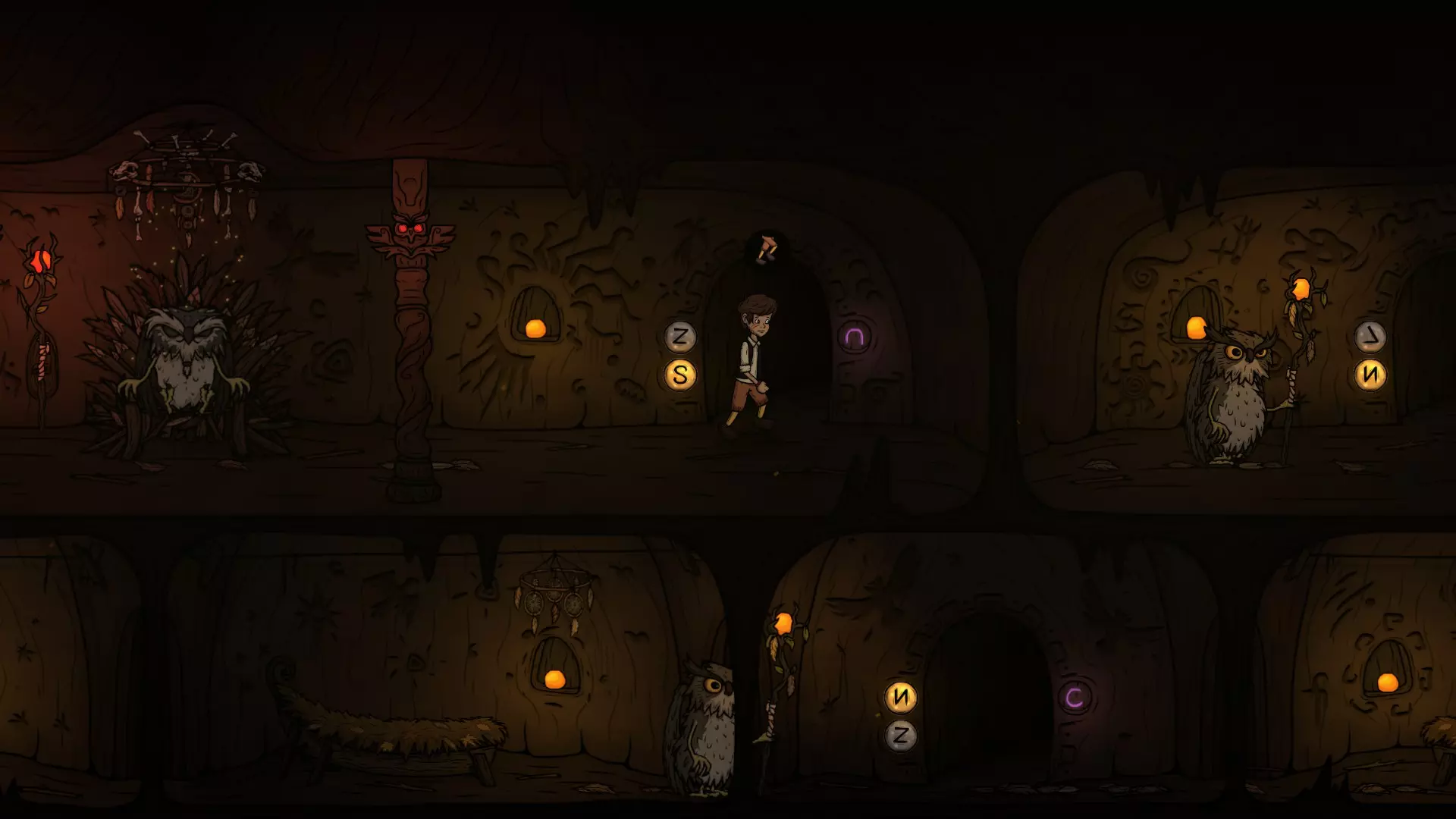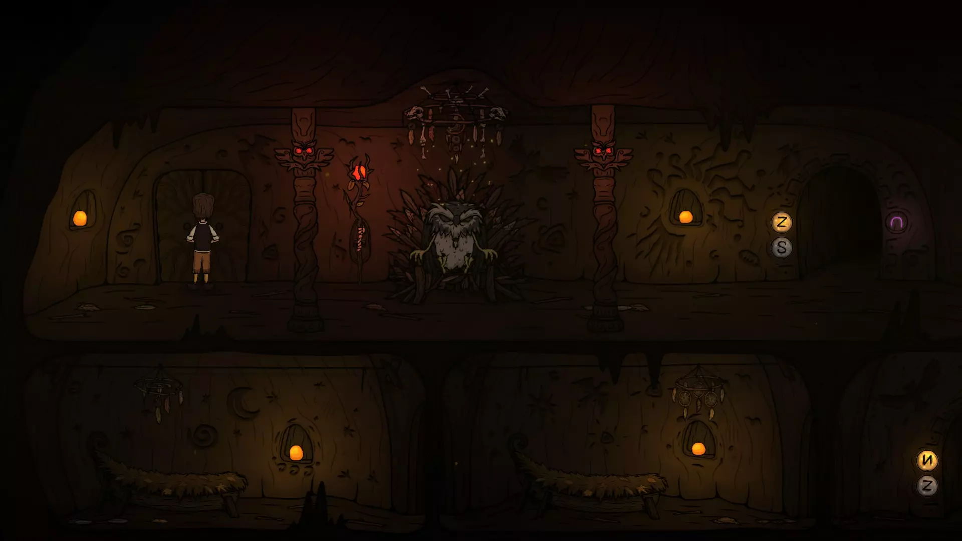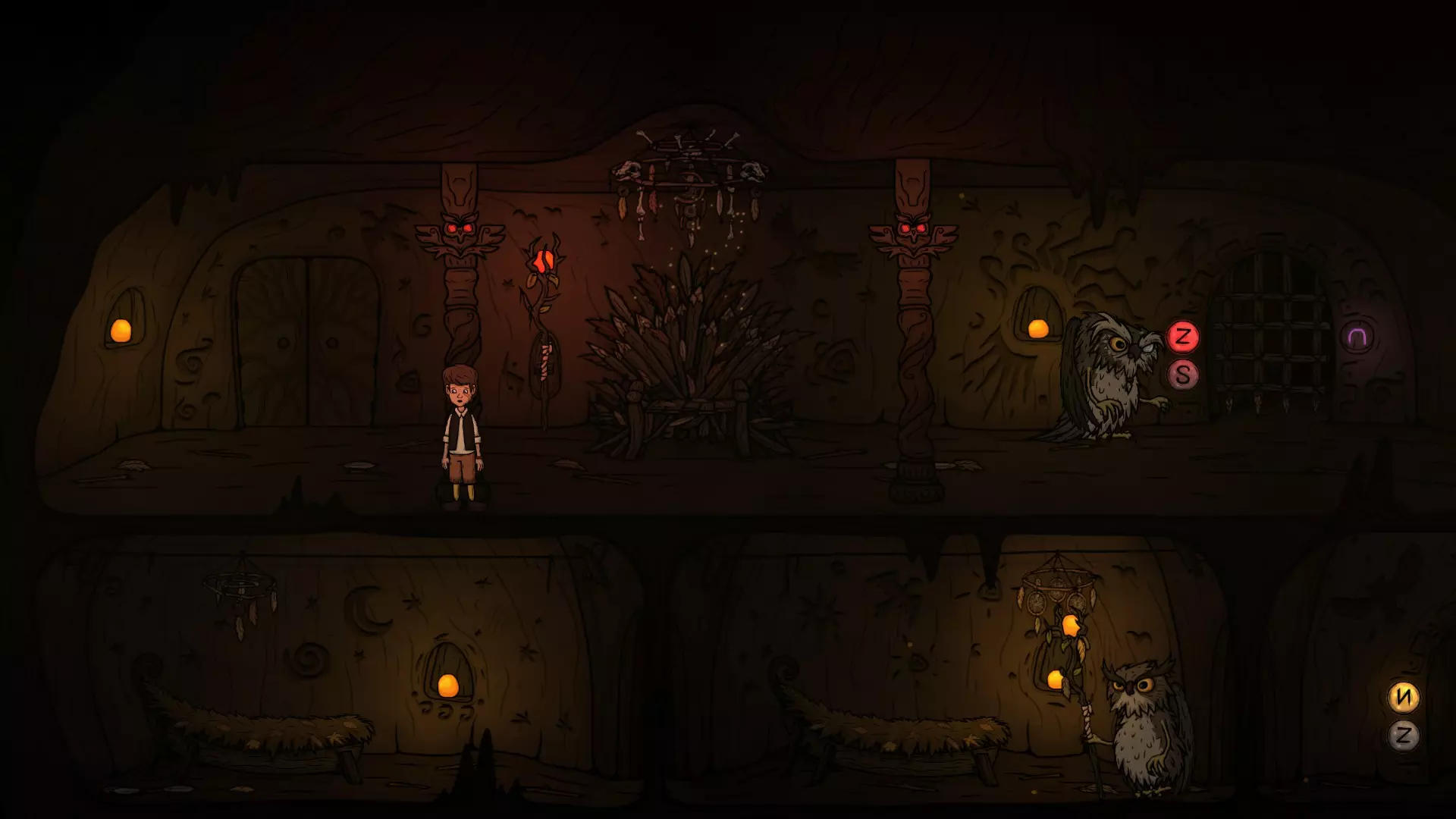 出门时注意巡逻猫头鹰的位置,抓住时机切换按钮进入X门