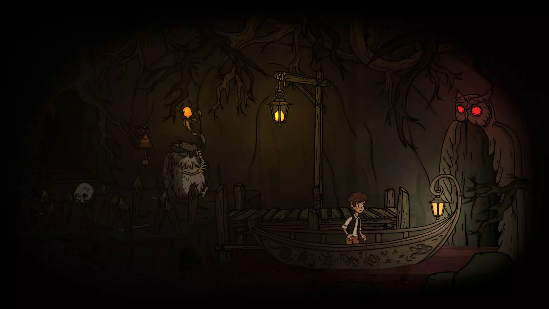 从S门出去往右走就能进入出口。猫头鹰守卫正在打瞌睡,从这边偷偷摸上船就能过关获取成就啦!