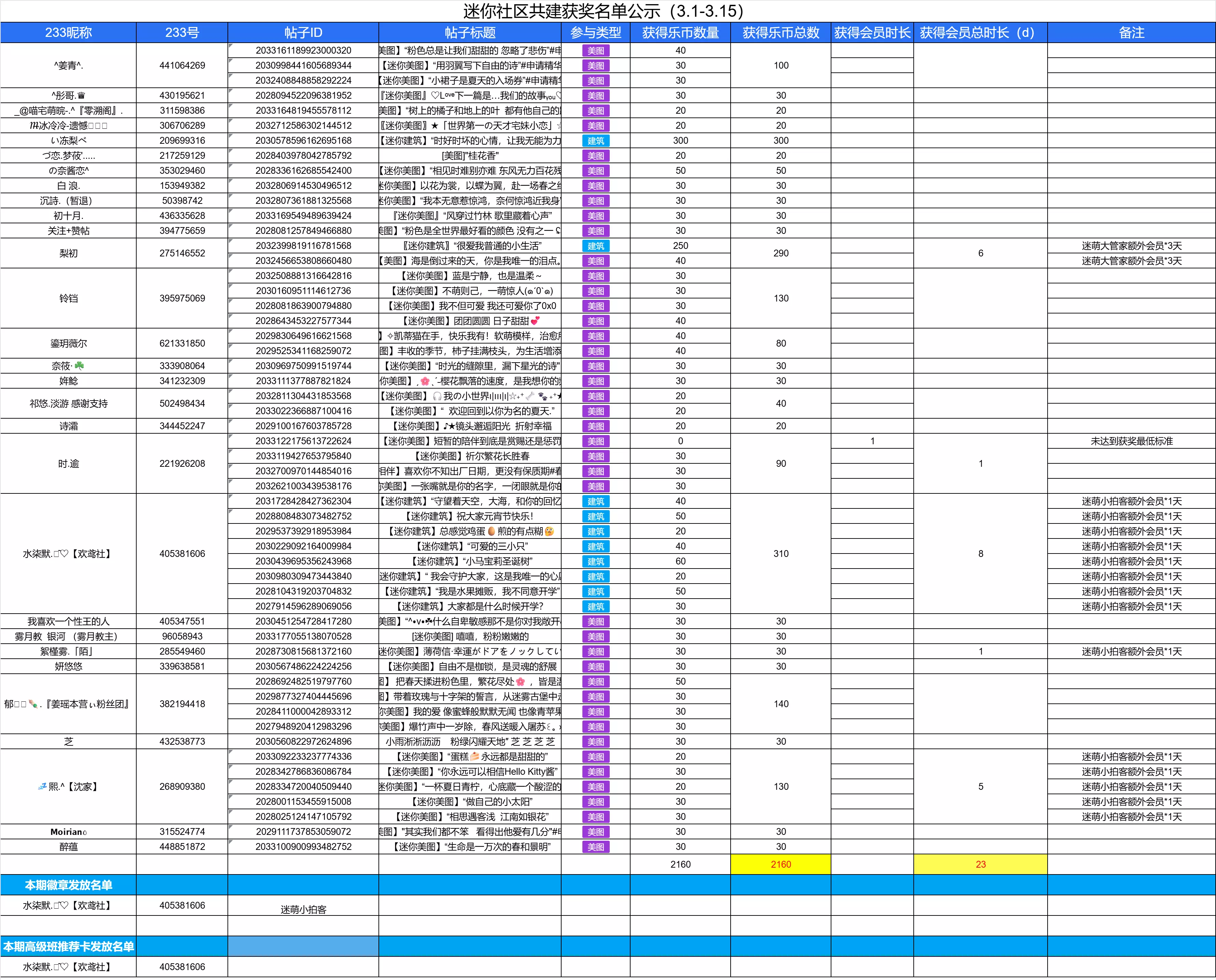 本文公布了《迷你世界》3月1日-3月15日社区共建获奖名单,包含获奖者233账号信息、获奖内容等,同时说明了奖励发放时间、公示规则,以及洗稿抄袭等违规行为的处理办法,号召大家持续参与社区共建。