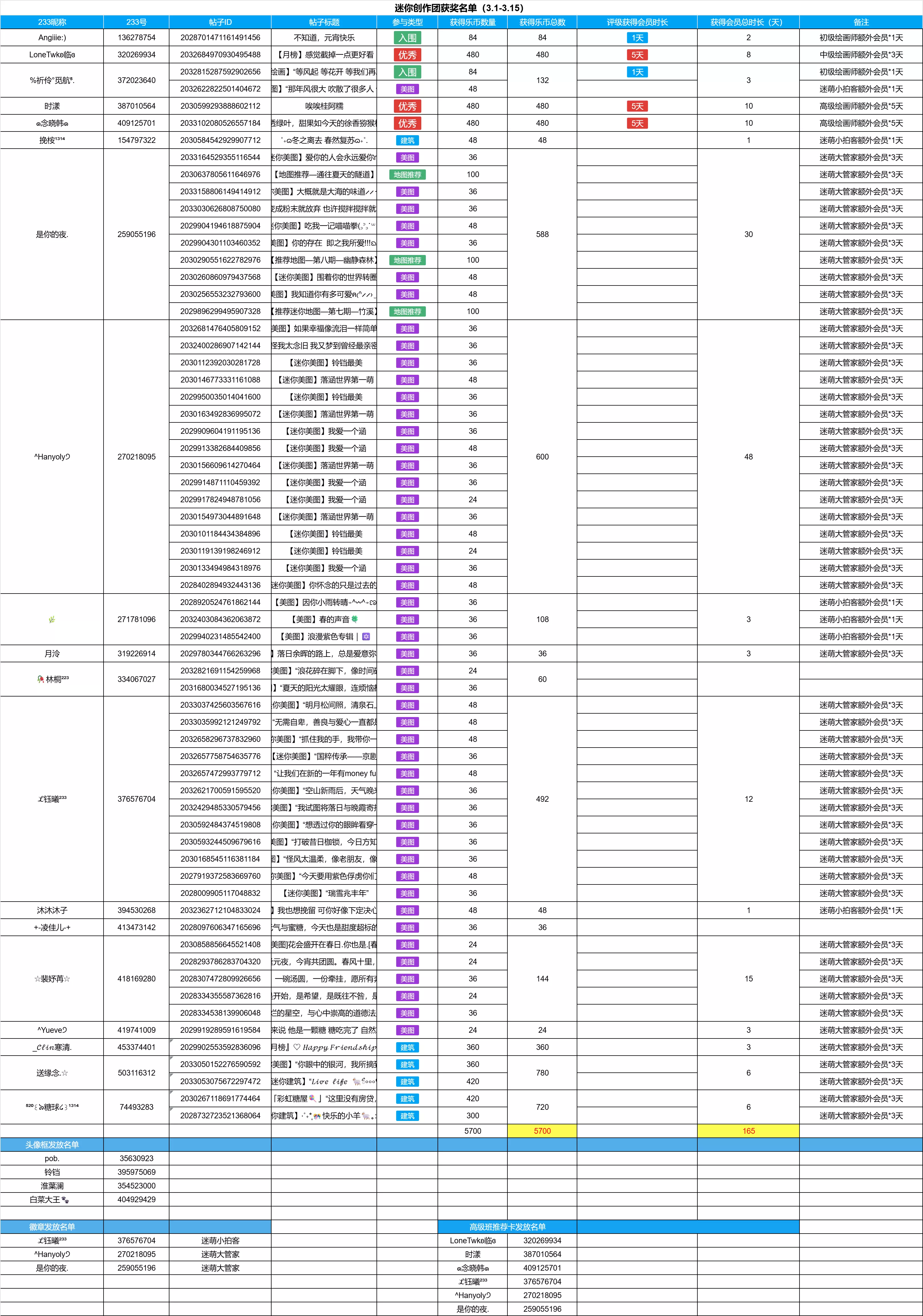 叮咚,上期获奖名单出炉啦-让我们康康都有谁获奖了吧!欢迎大家持续参与到迷你世界社区共建或迷你绘画师招募活动中来,欢迎大家踊跃前来投稿尝试哦!#迷你世界社区共建 #迷你世界绘画投稿