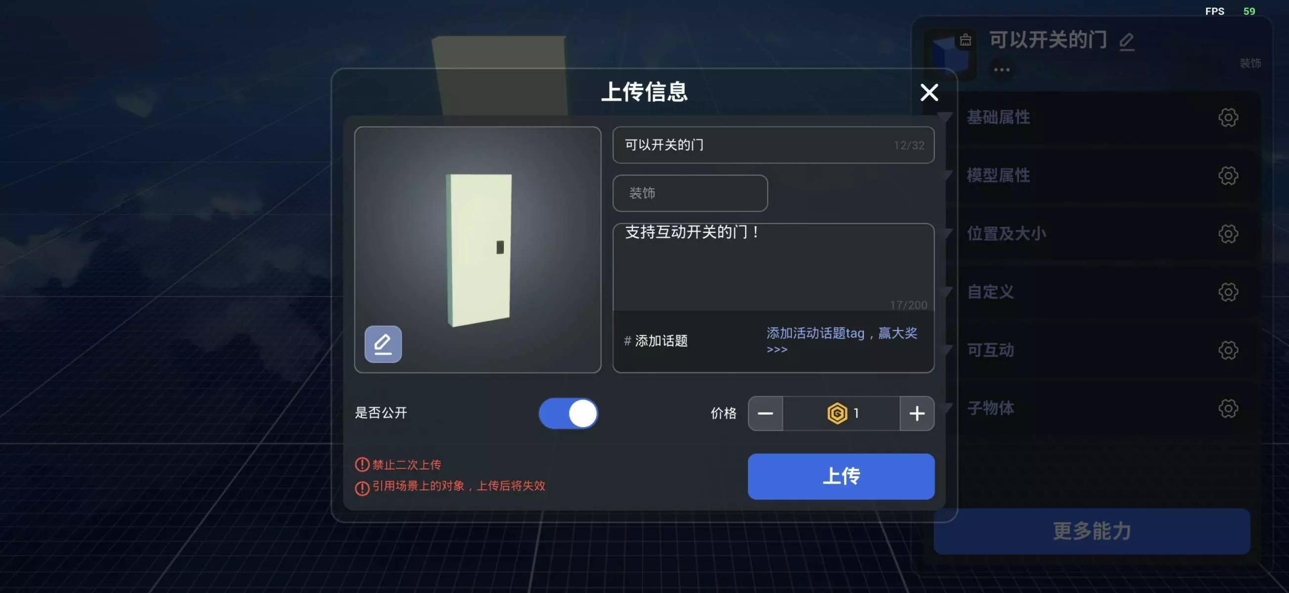 博主分享可开关的门素材,该素材支持互动开关,大家可获取学习相关逻辑,不懂可咨询博主,同时博主邀请喜欢或缺少素材的用户点击主页加群。