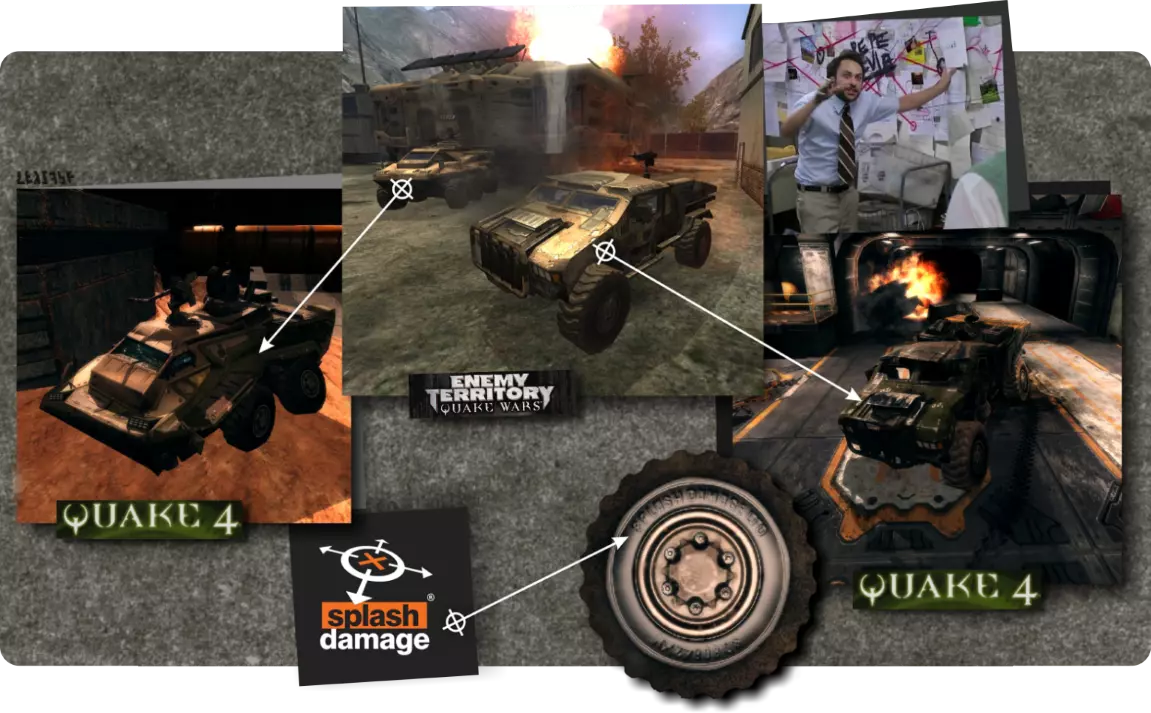 4.在【建筑工地】关卡中藏有一个《雷神战争》的彩蛋——(这并非唯一能找到彩蛋的关卡,但这里是最容易发现它的地方)。你肯定在整个战役中注意到过几辆燃烧的SMC载具,不过如果你仔细观察该关卡中受损的载具,会发现一辆犰狳卡车和一辆特洛伊装甲车。你还能在一些车轮上看到“Splash Damage LTD”的字样。 你之前知道这些彩蛋吗? 以下是一些我不会在本指南中公开讨论的额外话题(因为我认为它们的受众面较窄),但如果你问我相关问题,我很乐意与你交流。