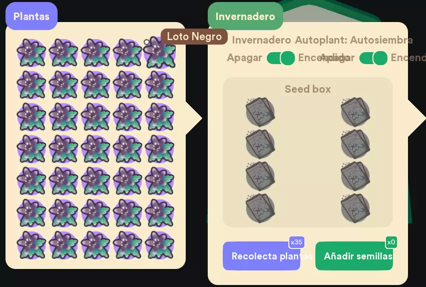温室售价为22989(没错,价格较高,但投资很快就能收回),同时会以250每个的价格收购黑莲花。 它的工作原理是怎样的呢? 将温室放置在自家土地上并接通电力后,把种子放入显示的空位中(可参考下方图片),温室就会自动将莲花存进箱子里。