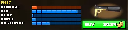 名称 爆头 胸射 臂射 腿射 弹夹容量 USP 50 25 22 12 12 FN57