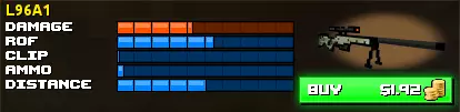 名称 爆头 胸射 臂射 腿射 弹夹容量 L96A1 170 85 72 47 5 副武器 格洛克