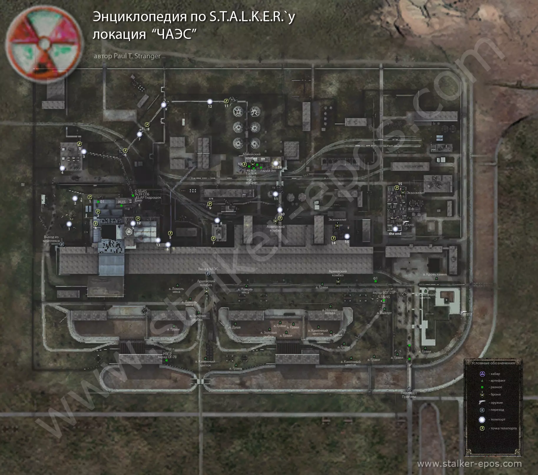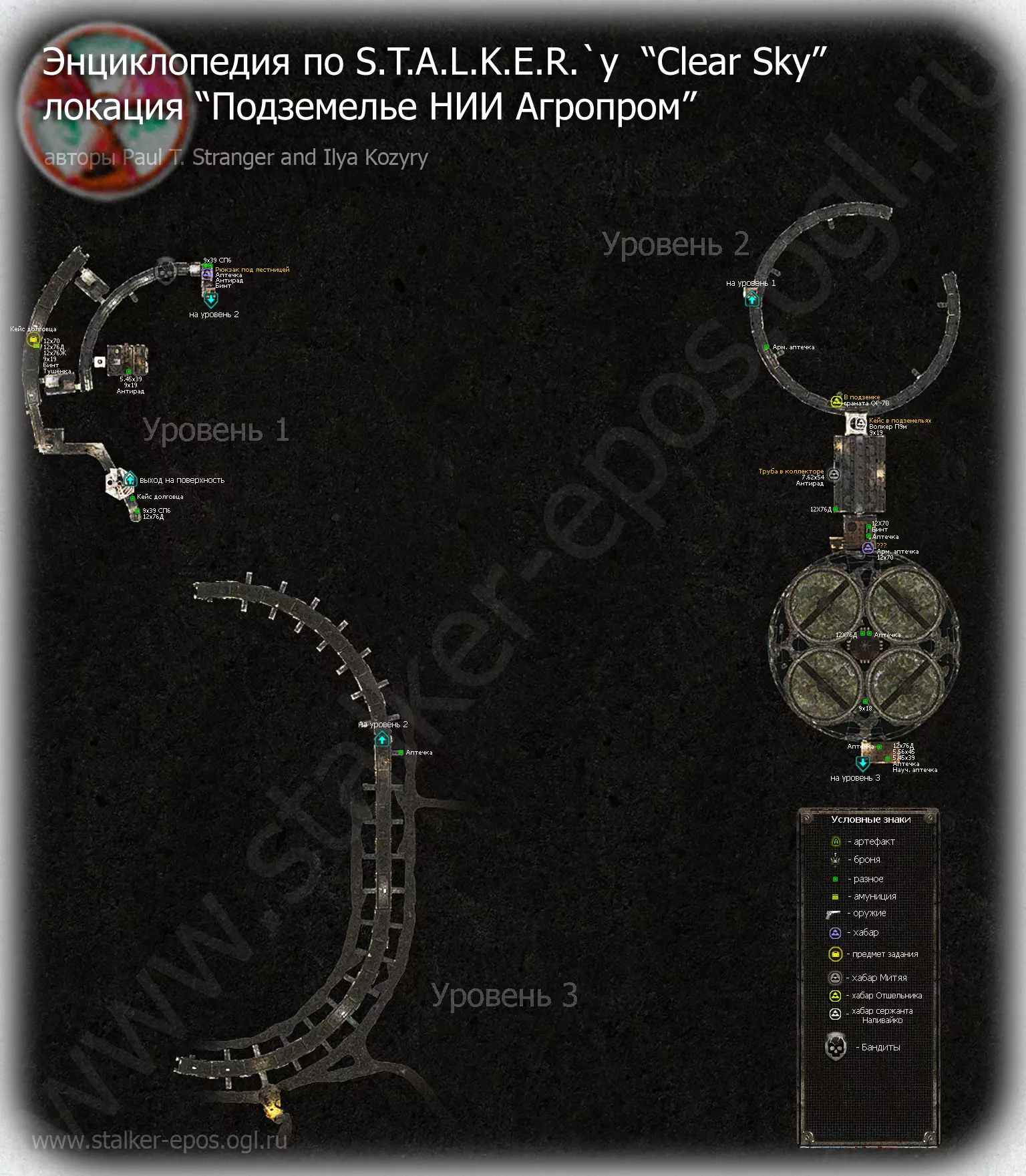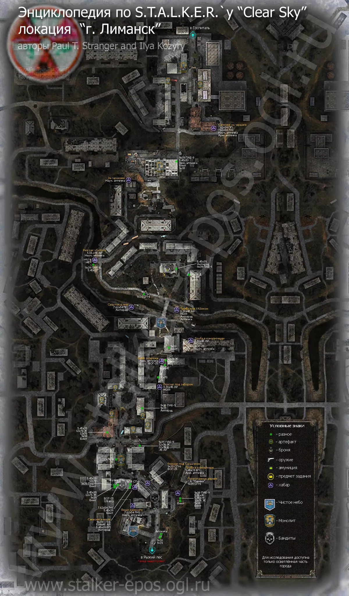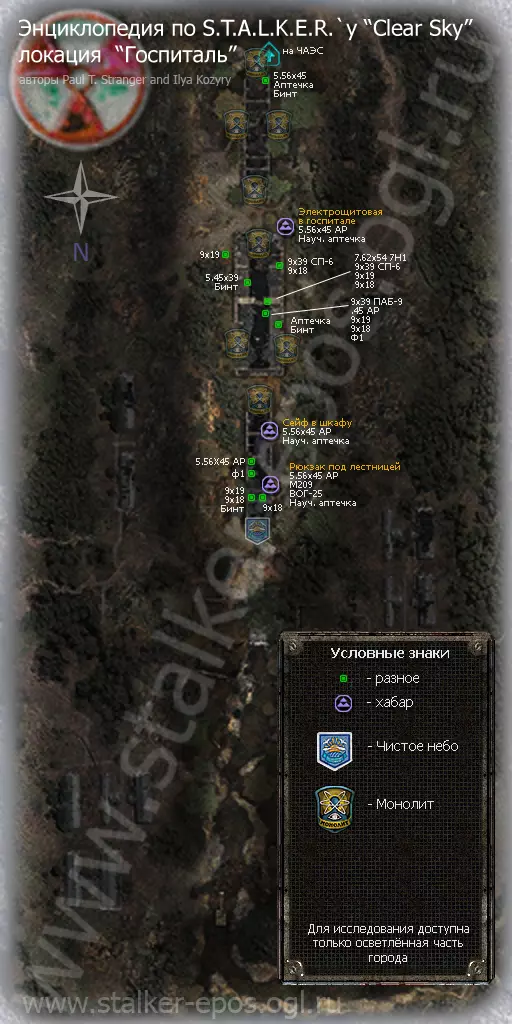 《潜行者:晴空》所有地点的详细地图。地图上标记了隐藏点、关键物品和人物、避难所、 artifacts(神器)、聚集区。沼泽