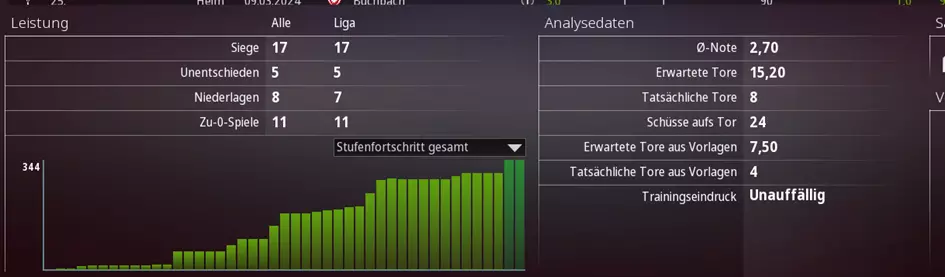 经过30多场比赛的赛季结束后 该球员在30多场比赛后能力值达到4.0。 如今他已成为一名平均水平的球员,能够在地区联赛的任何球队中担任主力。