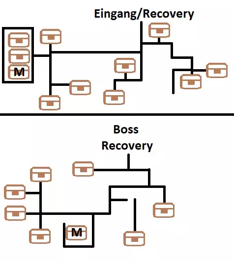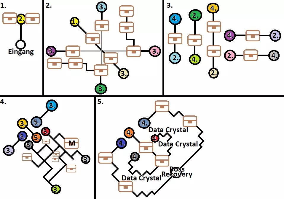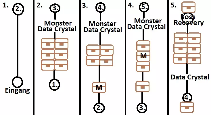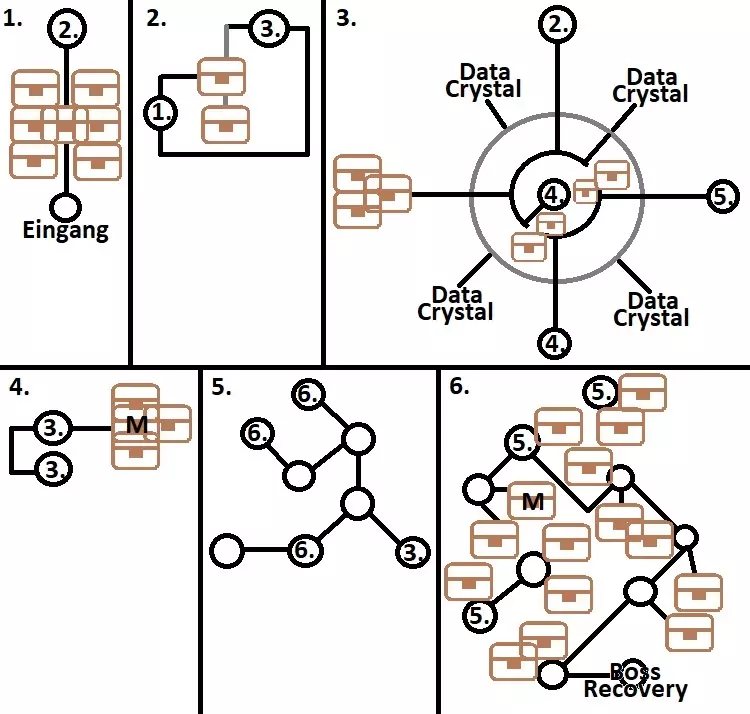 安贝尔区域 - 异空间 这里有30个宝箱:EP填充剂III、复活药、全回复药、EP填充剂II、骷髅吊坠、全回复药、翡翠宝石、土元素300以及时、空、幻属性耀晶片各100、生命之泉(男)、EP填充剂II、圣灵药、风暴加农炮、黄玉护符、全回复药、土元素300以及时、空、幻属性耀晶片各100、幻影戒指、全回复药、蓝隼徽章、治愈灵药、圣灵药、绝缘胶带、圣灵药、罗汉法杖、全回复药、治愈灵药、S石板、土元素300以及时、空、幻属性耀晶片各100、泽拉姆胶囊、塔吉·哈布、斗篷(394/517) 沿着上方的路走有两个宝箱,下两个平台同样各有两个宝箱。下一层什么都没有,但再下一层有两个宝箱和四个数据水晶12-15,无论选择哪个传送门都可以,因为两条路都会通向同一张地图。 这里有六个宝箱,右上角的宝箱有怪物守护。下方的传送门会带你们继续前进,上方的传送门则会返回有数据水晶站的地图。 无论选择哪条路,途中都会有一个宝箱,下一层还有一个。 根据你们现在选择的路线不同,其中一条路线在前往下一层前,上方有两个宝箱,左侧有一个;另一条路线则是左侧有两个宝箱,上方有一个。 两条路线上在这里都会再次发现一个宝箱,下一张地图则什么都没有。在最后一层,前往中央充能点的路上有两个宝箱。屋顶上,莉妮在等着你们。接下来将再次与帕特尔玛特战斗。