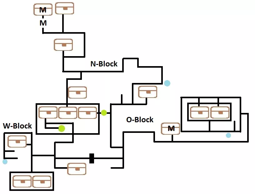 格兰赛尔下水道W区 这里有五个宝箱:神秘药膏、银护手、艾德尔特制铠甲、嗅盐、塞拉姆胶囊(128/517) 入口附近有一个钓鱼点。 沿着左边的路走有一个宝箱,往下走有两个宝箱,右边是三叉路口。(37/68) 下方有一个宝箱,中间是死胡同,上方有一个宝箱和目标怪物。 格兰赛尔下水道怪物,奖励:4000米拉,4BP(112/382)