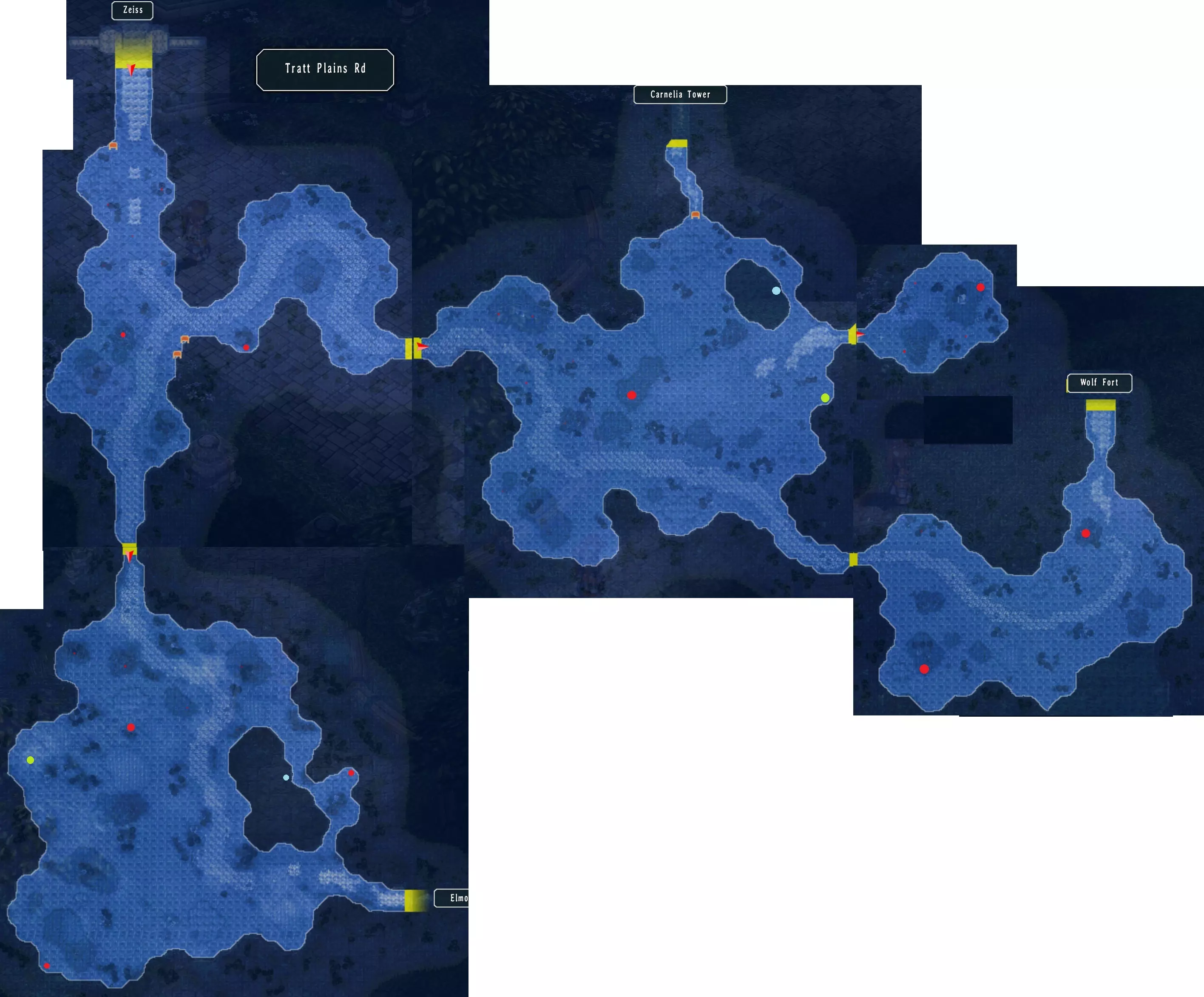 特拉特平原道 进行武器测试时,奥利维尔必须装备该武器,并在特拉特平原用它进行15场战斗。 新模型导力枪测试,奖励:2500+1000米拉,2+1BP(69/382) 这里有九个宝箱:土之虫,双鱼之心(天使),河螺,治疗药膏,绝缘胶带,全属性耀晶片×10,银耳环(男),洁拉美粉末,软化药膏(92/517) 埃尔莫村的旅馆内:山男炖菜,花朵奶昔,美味鸡蛋(24/68) 目标怪物在通往死胡同道路下方的第二张地图上。 特拉特平原怪物,奖励:3500米拉,3BP(72/382) 两个湖泊处各有一个钓鱼点。