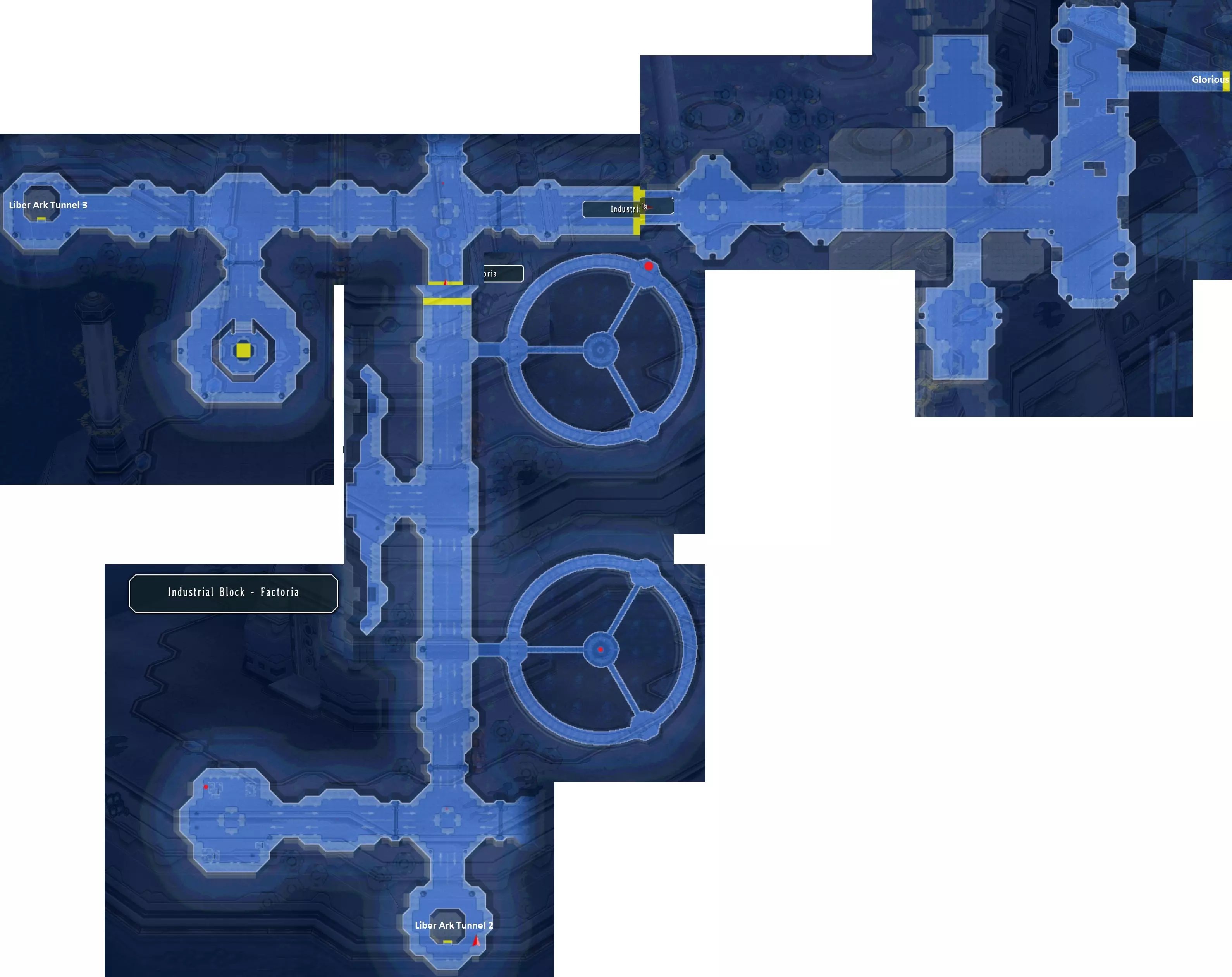 利贝尔方舟通道2 这里有八个宝箱:赫尔墨斯装置(M)、地、水、火、风耀晶片各100个、布里亚柔斯、圣灵药、风之结晶、圣灵药、狮王剑、珀尔塞蒂亚(421/517) 沿着路一直向左走,可找到一个装有怪物的宝箱。 继续向上走,在后方房间有三个宝箱,通过楼梯向下可继续前进。 在下一个大房间有另外两个宝箱。在右下方和右上方的门后各有一个宝箱。 沿着路走时,通道中间会出现一只怪物。 工业区块 - 工厂区 这里有三个宝箱:Ω驱动、幻影结晶、地、水、火、风耀晶片各100个(424/517) 向左走,在许多箱子后面找到第一个宝箱。 下一个宝箱在转子左侧的中间位置。最后一个宝箱位于第二个旋翼的外缘。使用下一张地图左下角的平台,并使用光环轨道的终端。在在线商店中,你可以用1000个对应属性的耀晶片购买黑耀石、金耀石和银耀石。要打开这扇门,你必须先击败光辉号以获取密码。完成这里的所有事情后,向右前往光辉号,你的队伍中需要有乔瑟特。说“Go For It”即可登上飞船,但在此之前会有一场战斗。
