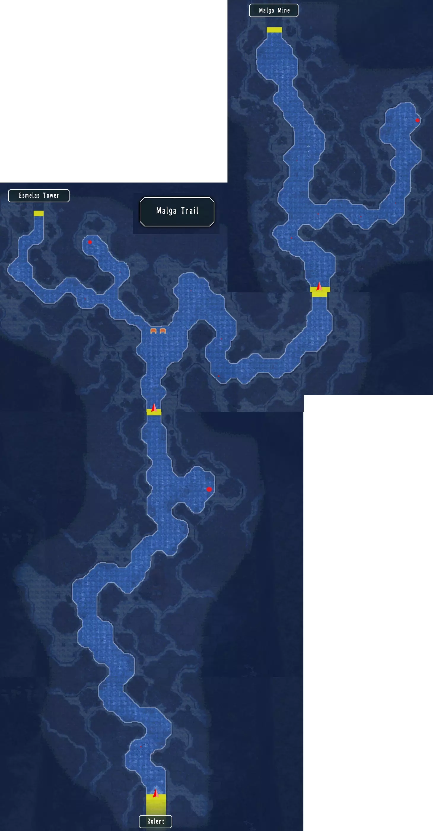 马尔加山道 这里有三个宝箱:复活药、中回复药、中回复药(178/517) 收集完这里的所有物品后,前往艾斯梅拉达塔。