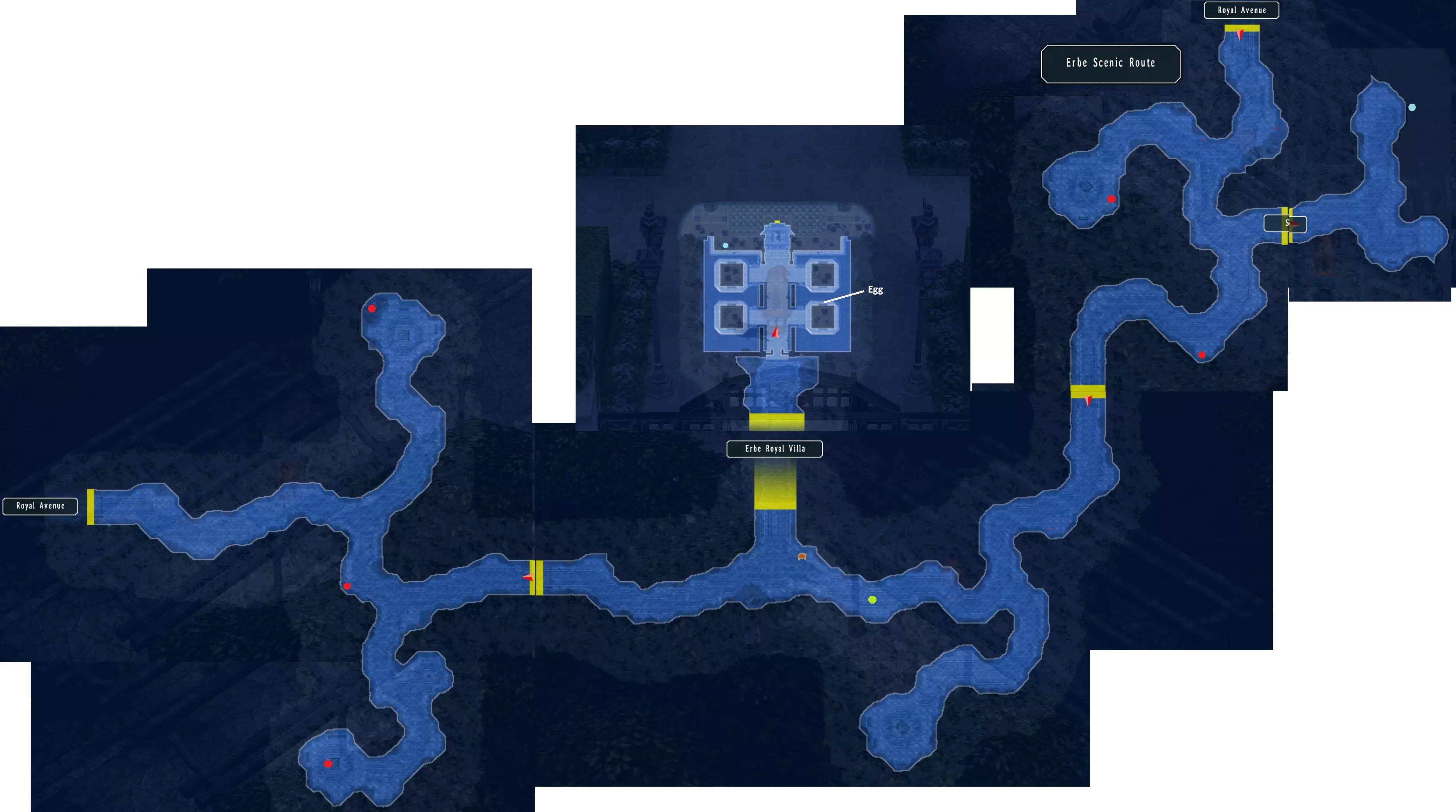 皇家别墅与埃尔贝景观路 从皇家大道前往古伦门:可获得【Shellful Dish】、【Turnin' Tempura】、【Anarchy Soup】(40/68) 继续经由埃尔贝景观路前往皇家别墅。 此处有五个宝箱:【致命一击2】、【治愈药膏】、【防御3】、【治愈药膏】、【全属性耀晶片x20】(133/517) 埃尔贝景观路右侧有一个钓鱼点。别墅前右侧可找到目标怪物。埃尔贝景观路怪物,奖励:4500米拉,4 BP(116/382) 与埃尔贝皇家别墅前、两个喷泉之间右侧的鸽子【Egg】对话。 在第一个房间左侧找到杜南公爵。 不借助雷蒙德的帮助找到女孩可获得+3 BP。女孩位于雷蒙德旁边吧台下方的左上房间内。