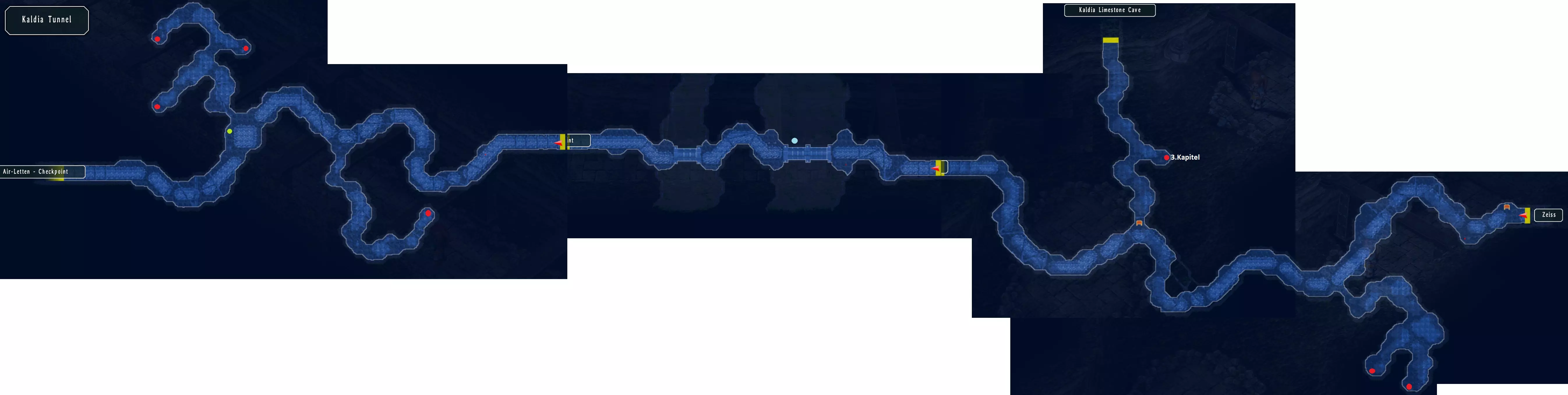 卡尔迪亚隧道 这里有七个宝箱:青蛙、幻影戒指(M)、双子战靴、EP填充剂、中回复药、致命一击2、绝缘胶带(79/517),最后一个宝箱需在第三章才能到达。 在隧道中段的桥上,回复点旁有一个钓鱼点。 目标怪物在隧道接近尽头的位置。 卡尔迪亚隧道怪物,奖励:3000米拉、3BP(57/382)