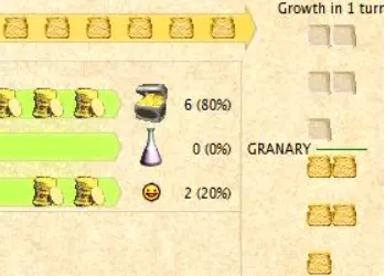 注意“伦敦”右侧的数字。这代表城市成长还需的回合数。如果你拥有粮仓,该数字应始终为1。