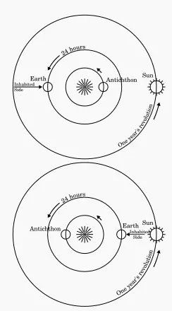 图2,工厂中发现的笔记。请注意,死者与星辰之间的联系明确指向一种柏拉图-毕达哥拉斯式的神秘主义。 反地球 我们还在游戏中了解到,在正常的地球之外,或者说曾经的地球之外,还有一个“血腥地球”,我认为这类似于毕达哥拉斯学派的“反地球”概念,该概念最初由克罗顿的菲洛劳斯提出。以下是亚里士多德对这一理论的描述: 但被称为毕达哥拉斯学派的意大利哲学家们持相反观点。他们认为,中心是火,地球是星辰之一,通过围绕中心的圆周运动产生昼夜。他们还构建了另一个与我们的地球相对的地球,并将其命名为反地球。在这一切中,他们并非寻求理论和原因来解释观察到的事实,而是强行进行观察,并试图使这些观察符合他们自己的某些理论和观点。但还有许多人认为,将地球置于中心位置是错误的,他们更倾向于从理论而非观察事实中寻找证实。他们的观点是,最珍贵的位置应配得上最珍贵的事物:他们说,火比土更珍贵,界限比中间物更珍贵,而圆周和中心都是界限。基于此,他们认为位于球体中心的不是地球,而是火(亚里士多德,《论天》,第二卷,第十三章,293节)。