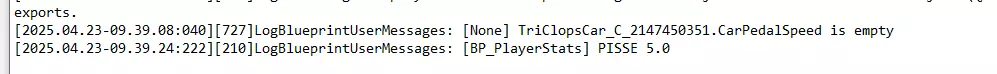 现在打开我们的日志文件,滚动到最底部,一直到最底部,然后寻找类似这样的一行,其中会写有我们的车辆名称以及问题描述。