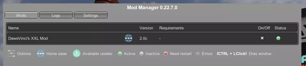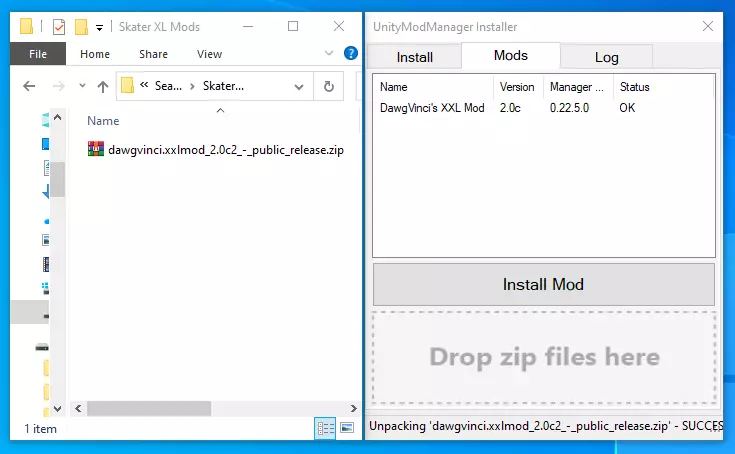 将每个模组逐一拖放到标有“在此处拖放压缩文件”的区域。模组应会显示出来,且状态显示为“OK”。此时模组已安装完成,你可以按照相同步骤安装其他想要的模组。