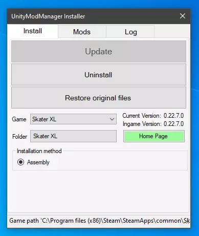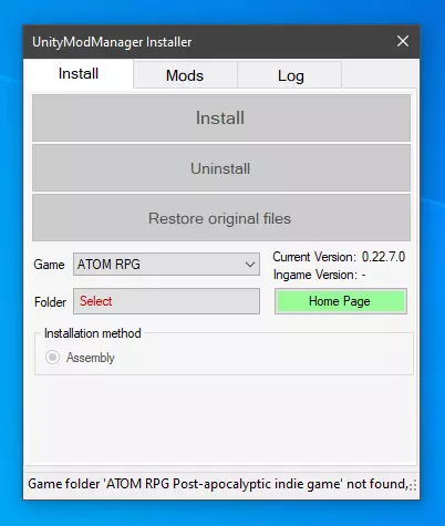 安装Unity Mod Manager 打开桌面上的新文件夹并运行UnityModManager应用程序。你将看到如下界面: