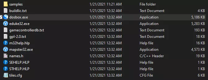 你应该会看到两个文件夹,一个是bin文件夹,另一个是gameroot文件夹。gameroot文件夹包含所有游戏数据,而bin文件夹应包含你下载游戏时设置好的DOSBox。进入bin文件夹,删除其中的所有文件。然后将你的源代码端口中的所有文件复制到该文件夹,并将启动该端口的可执行文件重命名为“dosbox.exe”(不带引号)。如果你使用的是VoidSW,你的bin文件夹现在应该是这样的: