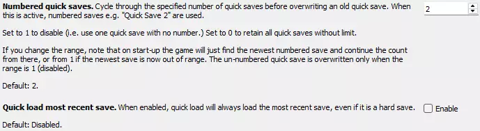 快速存档编号。此处可根据个人喜好设置,我个人设为1,这样会覆盖同一个快速存档。如果不喜欢这种方式,可以设为2或其他数字。